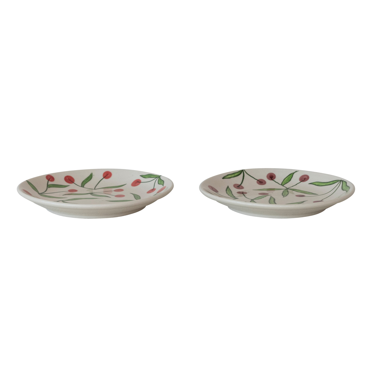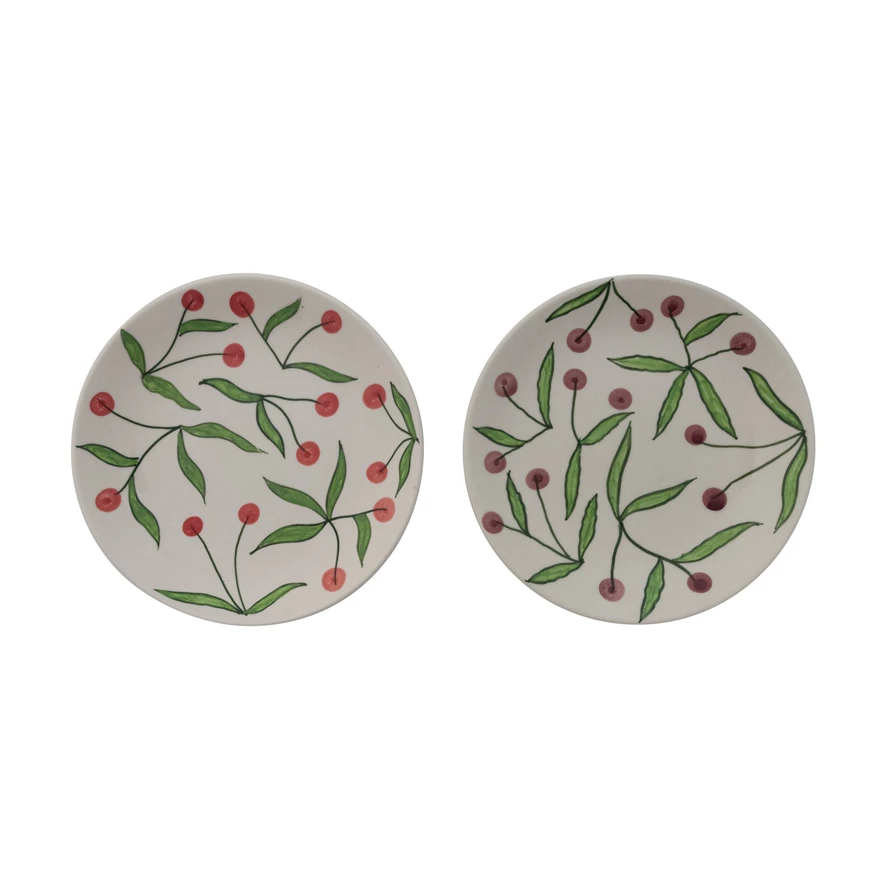 7-1/2" Round Hand-Painted Stoneware Plate with Cherries, 2 Colors (Each One Will Vary)