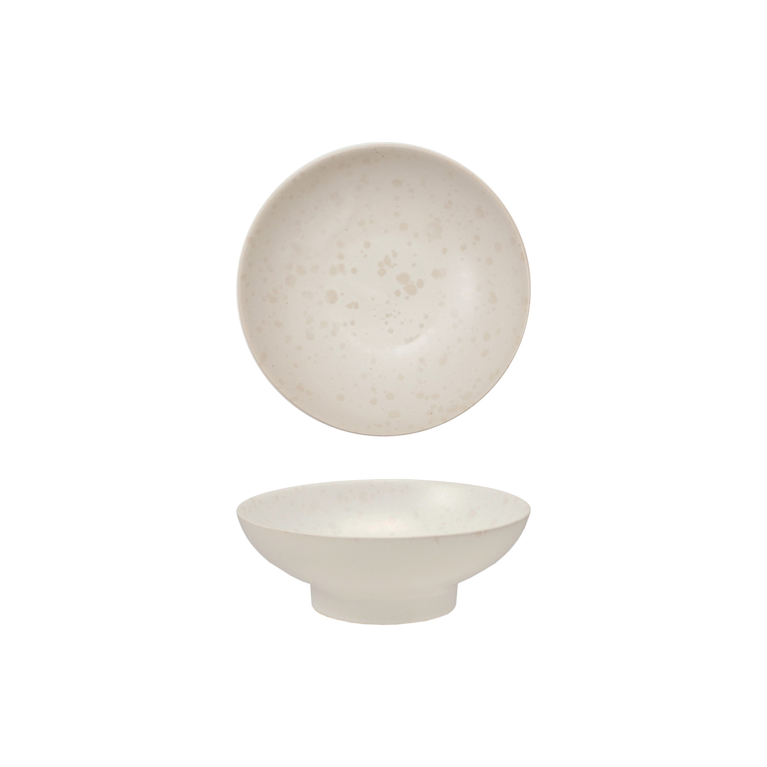 Catalog Name: 5-1/2" Round x 2"H Stoneware Footed Bowl, Reactive Glaze, White Speckled (Each One Will Vary)