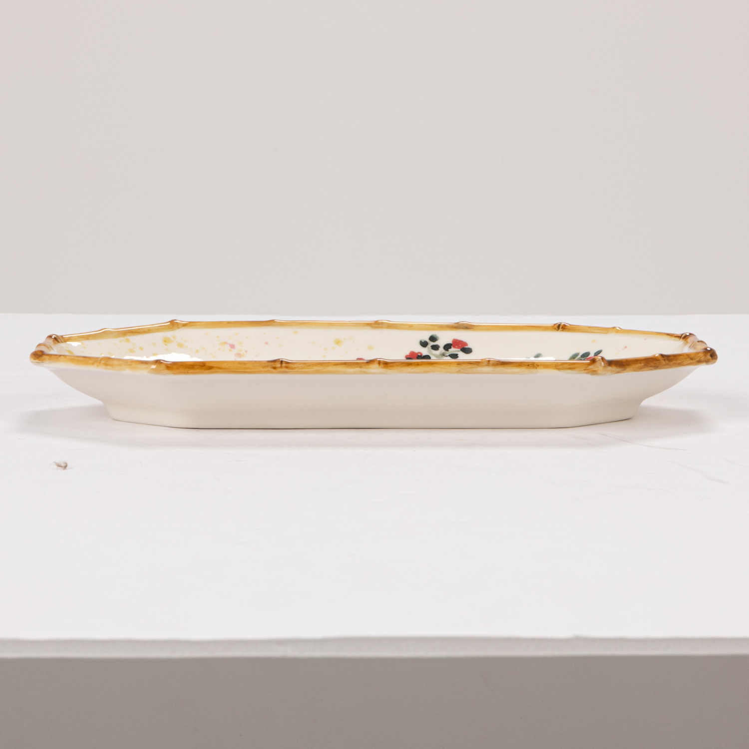 Catalog Name: 10"L x 5"W Hand-Painted Stoneware Octagon Shaped Plate w/ House, Tree & Bamboo Style Edge, Multi Color