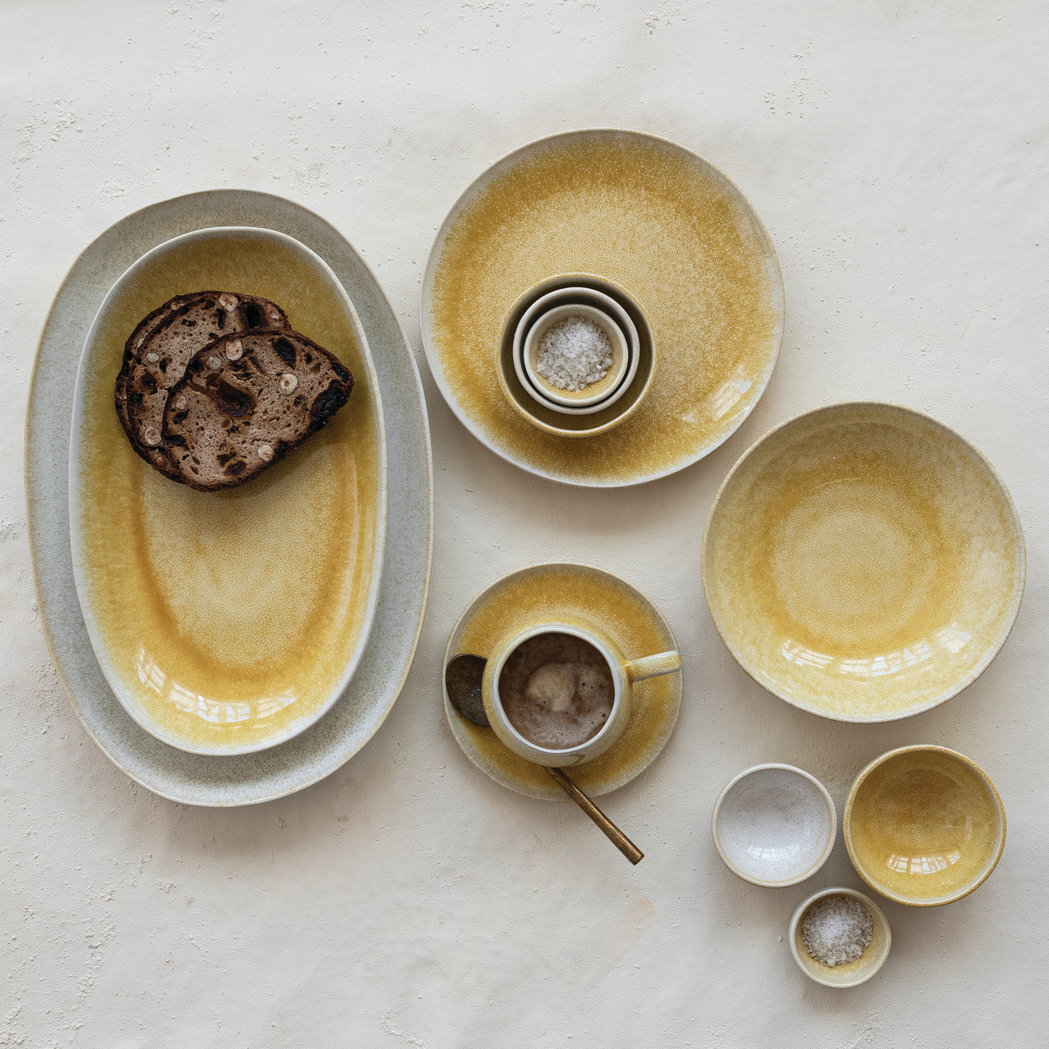 Catalog Name: 6-1/2" Round Stoneware Plate, Reactive Glaze, Yellow (Each One Will Vary)