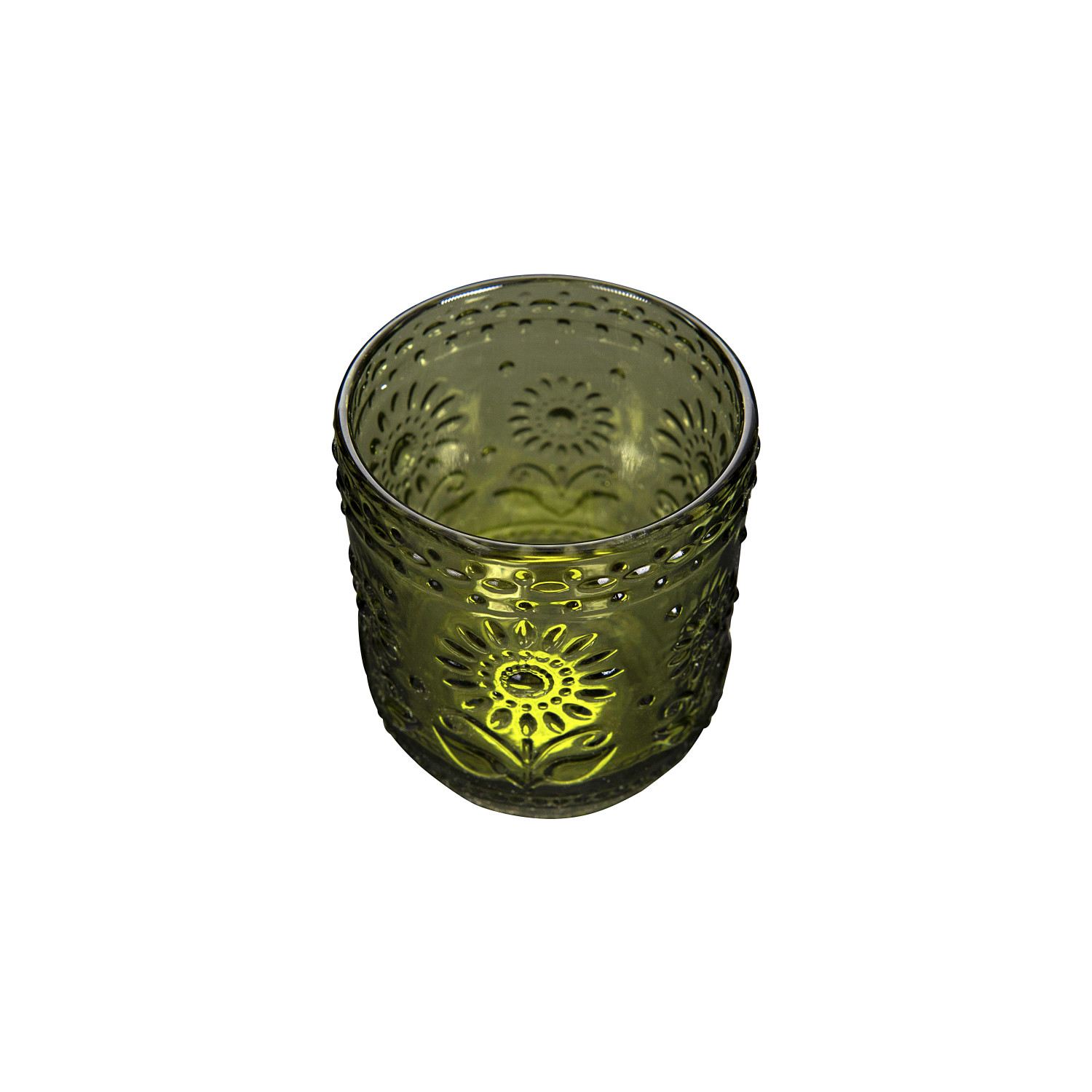 Catalog Name: 3-1/4" Round x 4"H 12 oz. Pressed Drinking Glass, Green