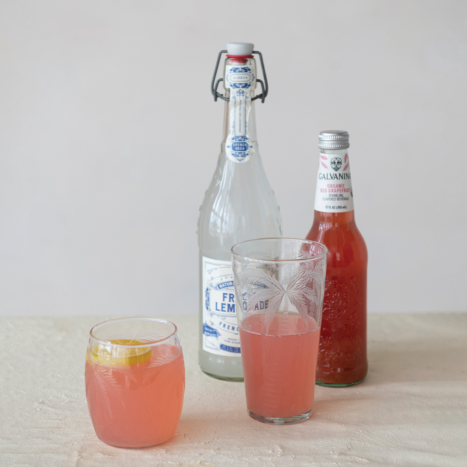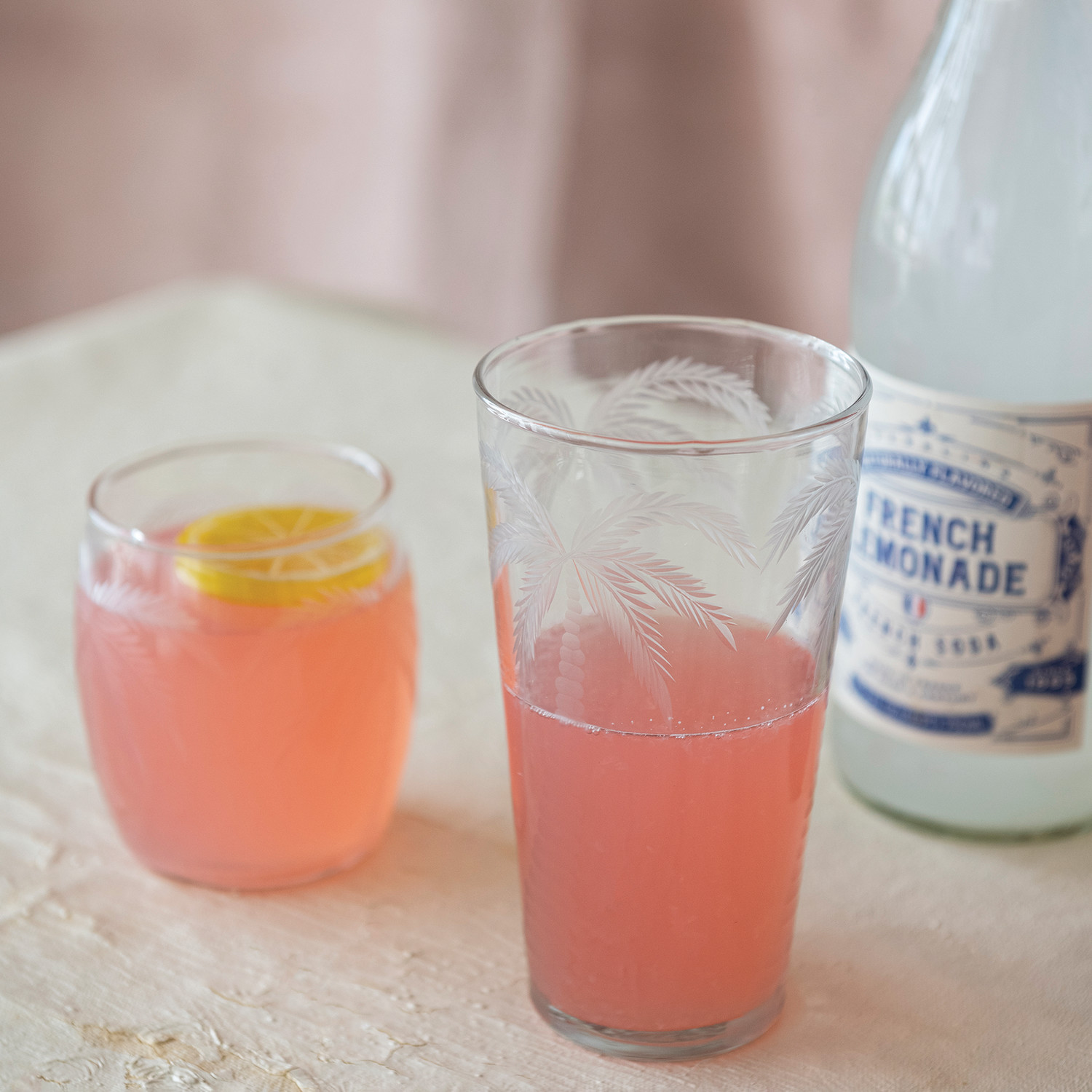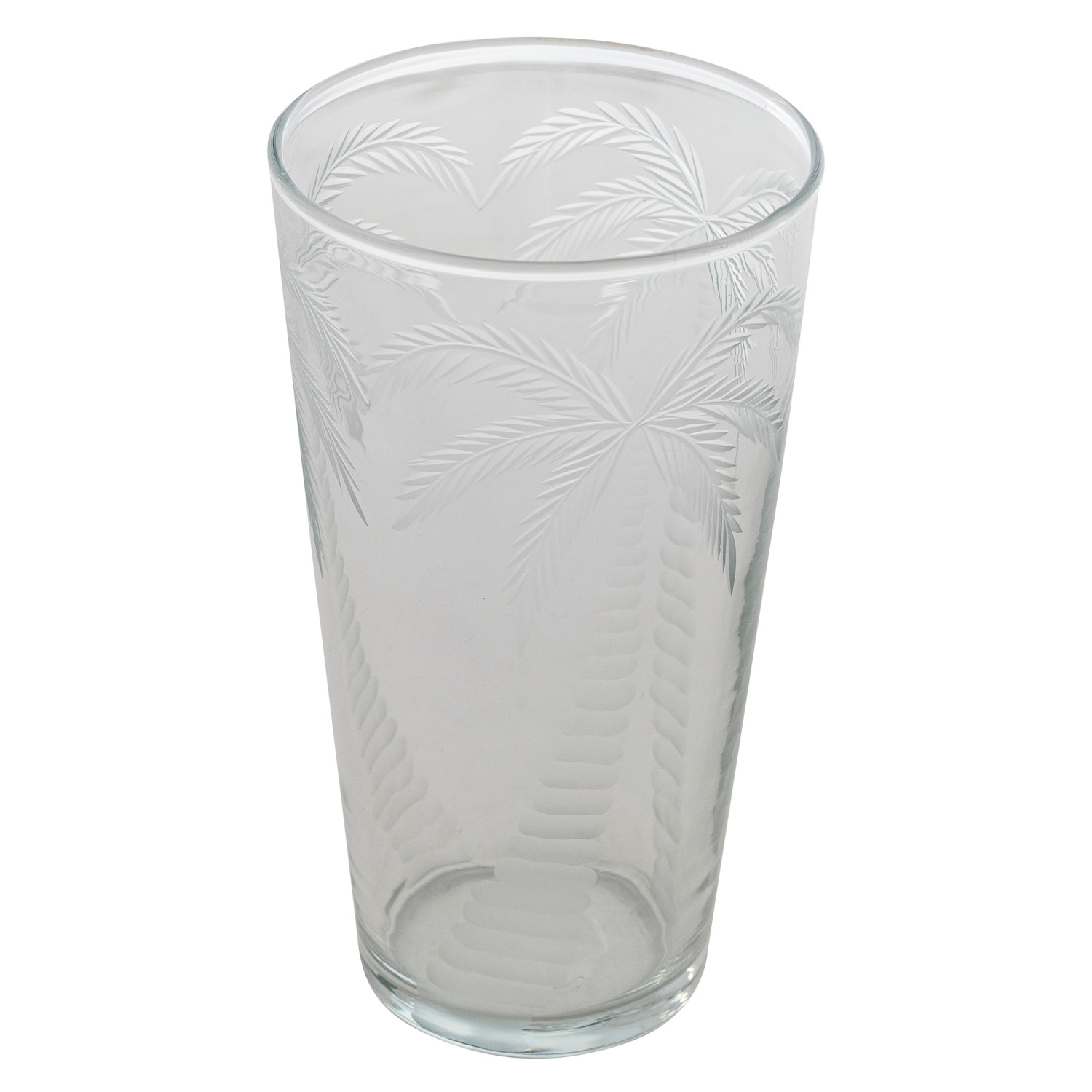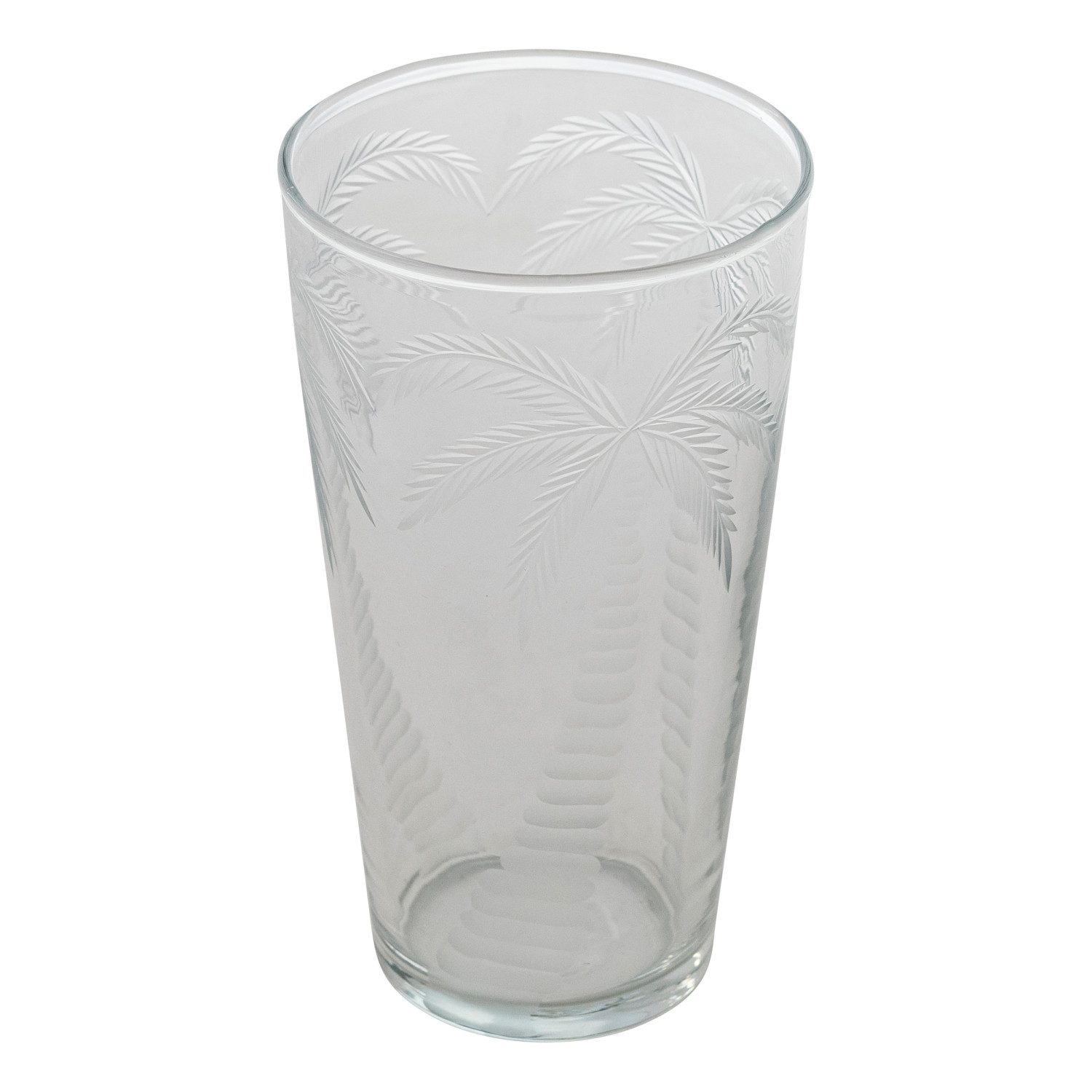 Catalog Name: 3-1/4" Round x 6"H 12 oz. Etched Drinking Glass w/ Palm Trees