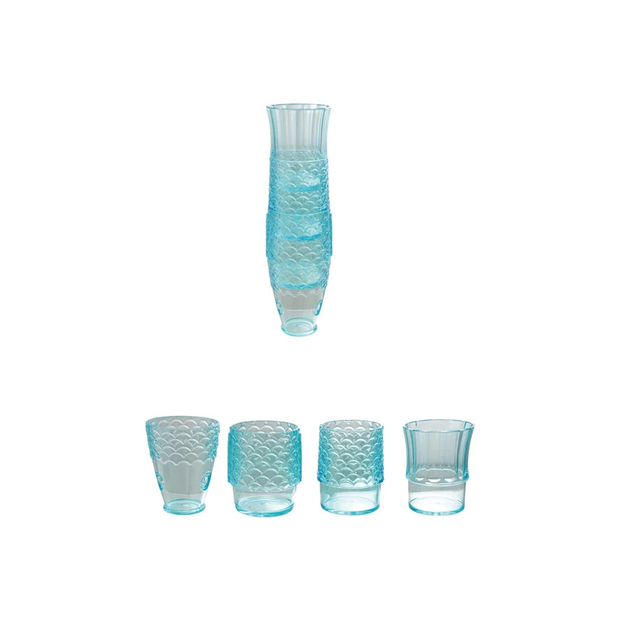 12-14 oz. Acrylic Stackable Fish Shaped Drinking Glasses, Blue, Set of 4