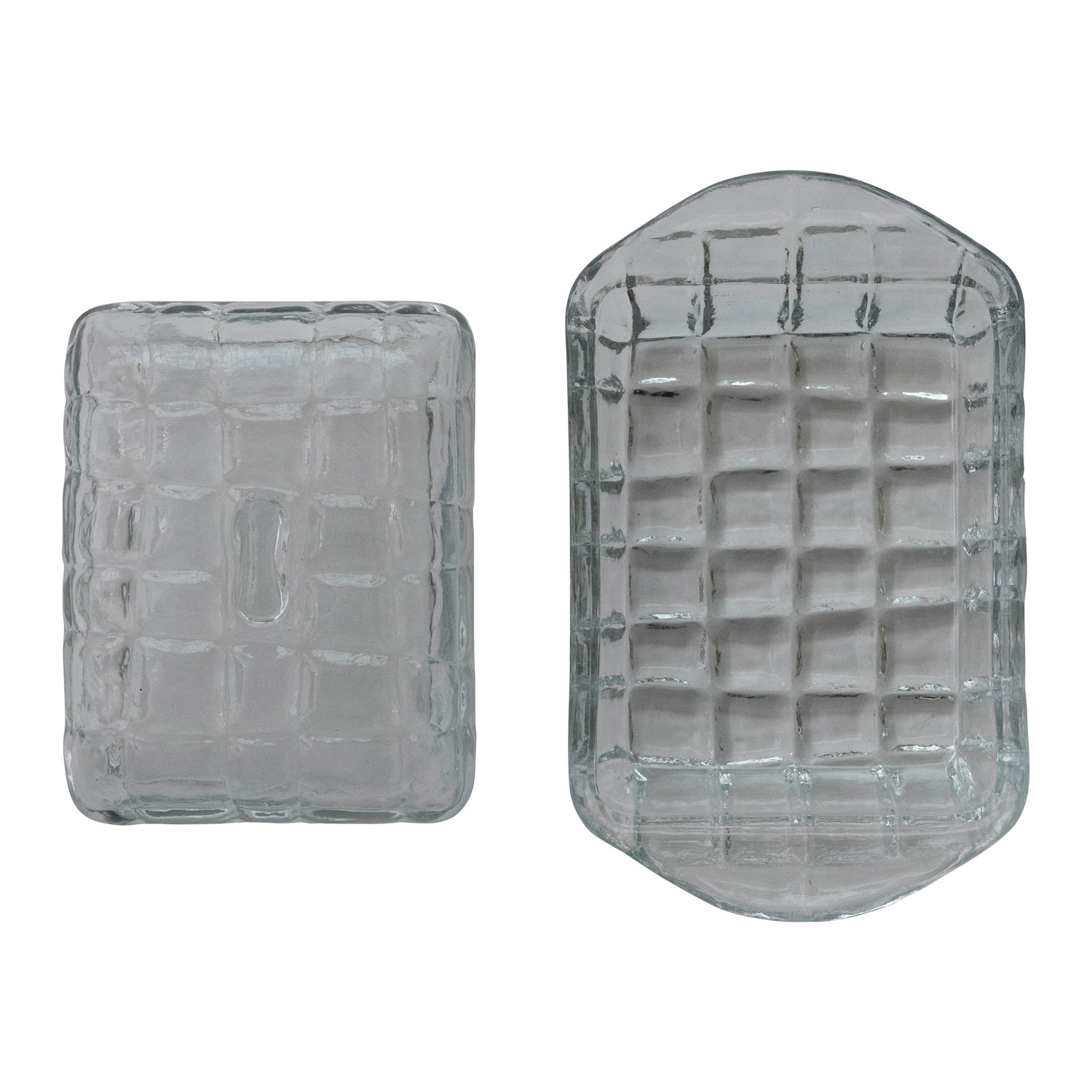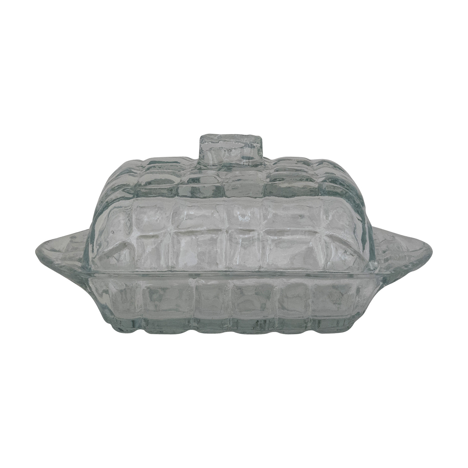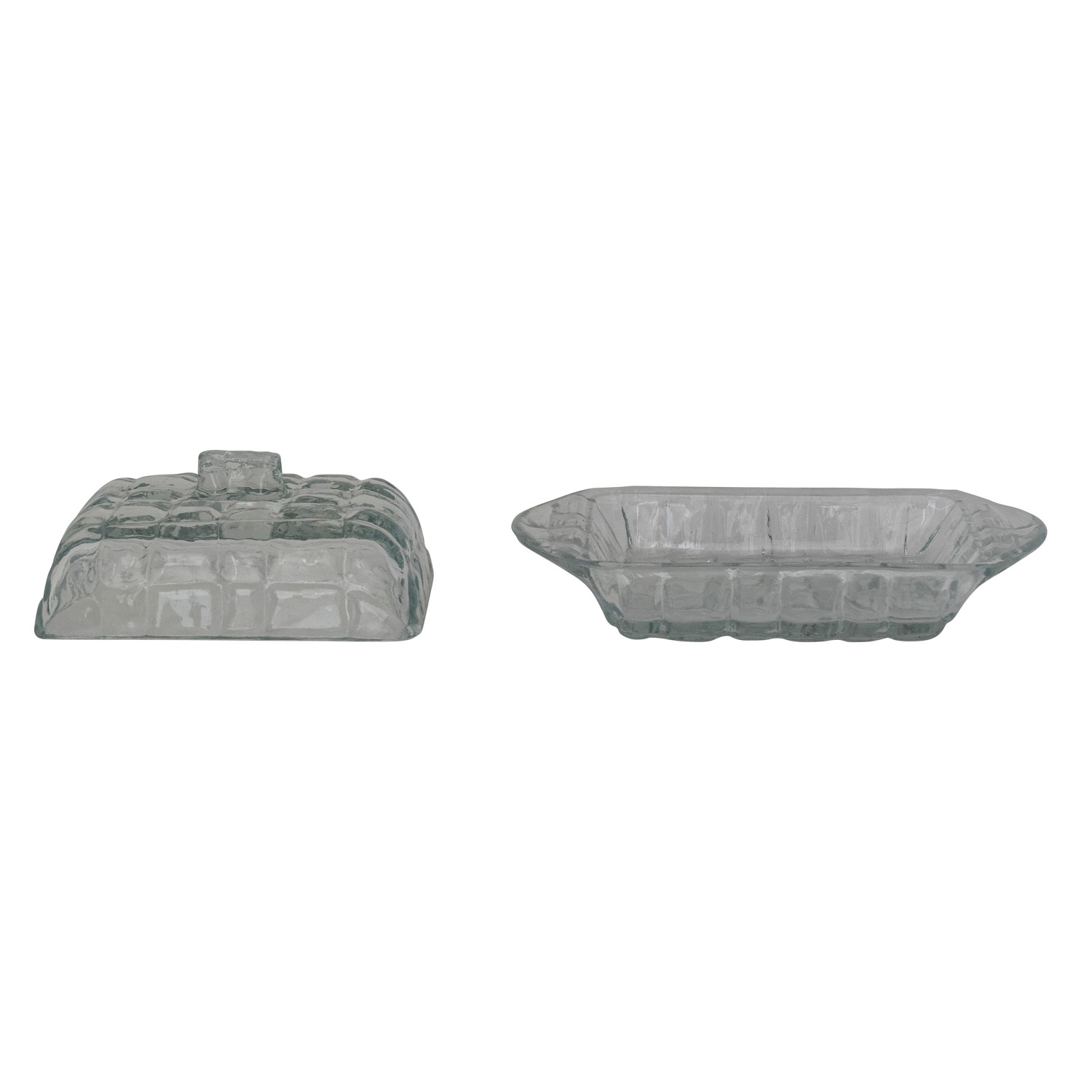 6-3/4"L x 4"W x 3"H Pressed Glass Butter Dish with Grid Pattern