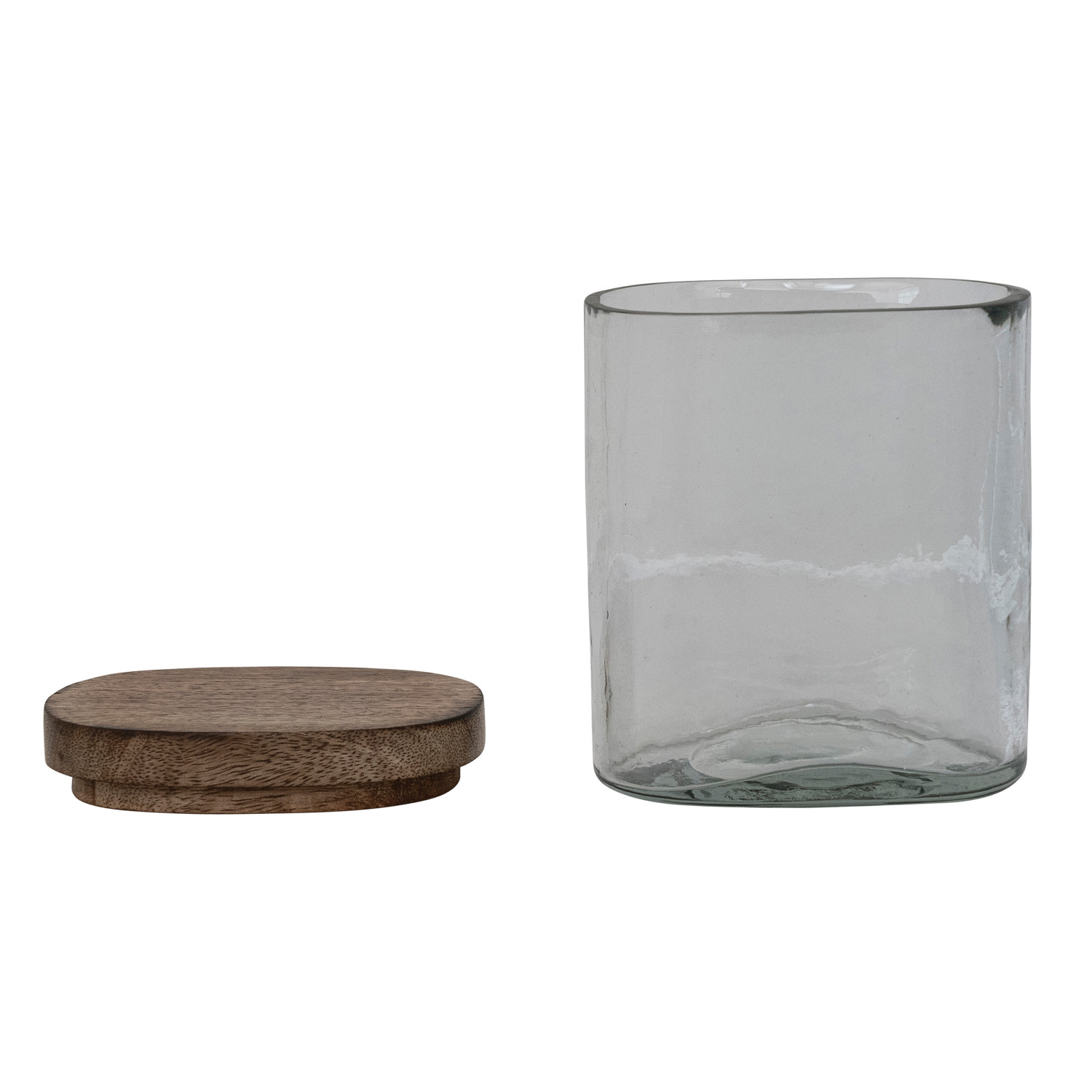 Catalog Name: 4"L x 3"W x 5"H 14 oz. Hand-Blown Glass Jar w/ Mango Wood Lid, Natural