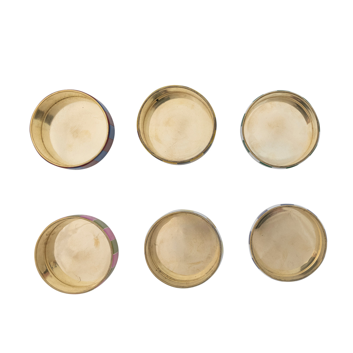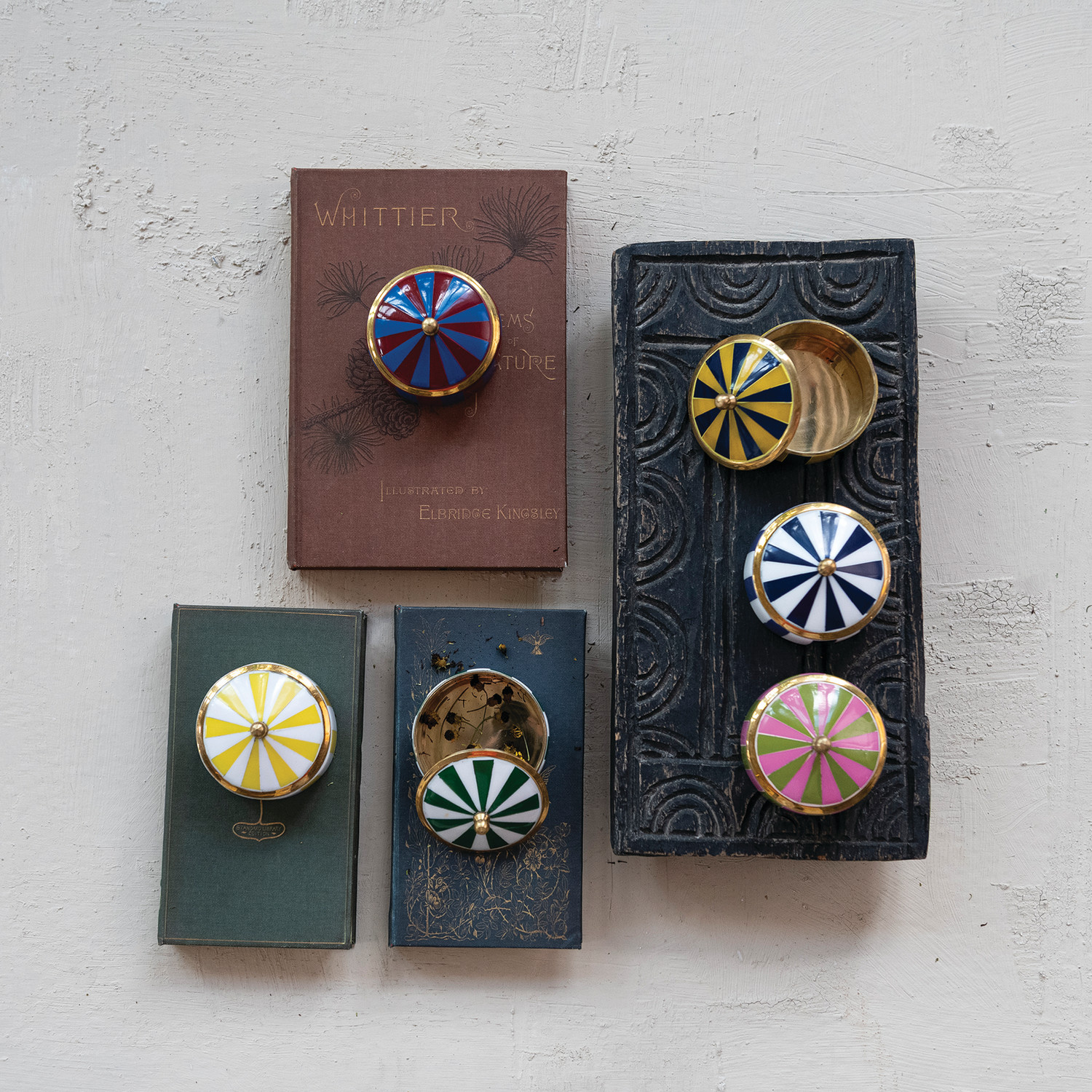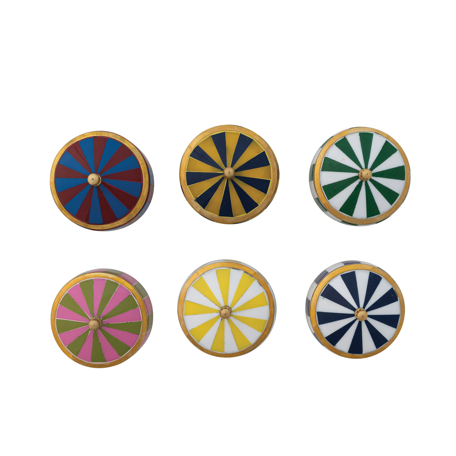 Catalog Name: 2-3/4" Round x 2"H Brass & Resin Striped Box, 6 Colors