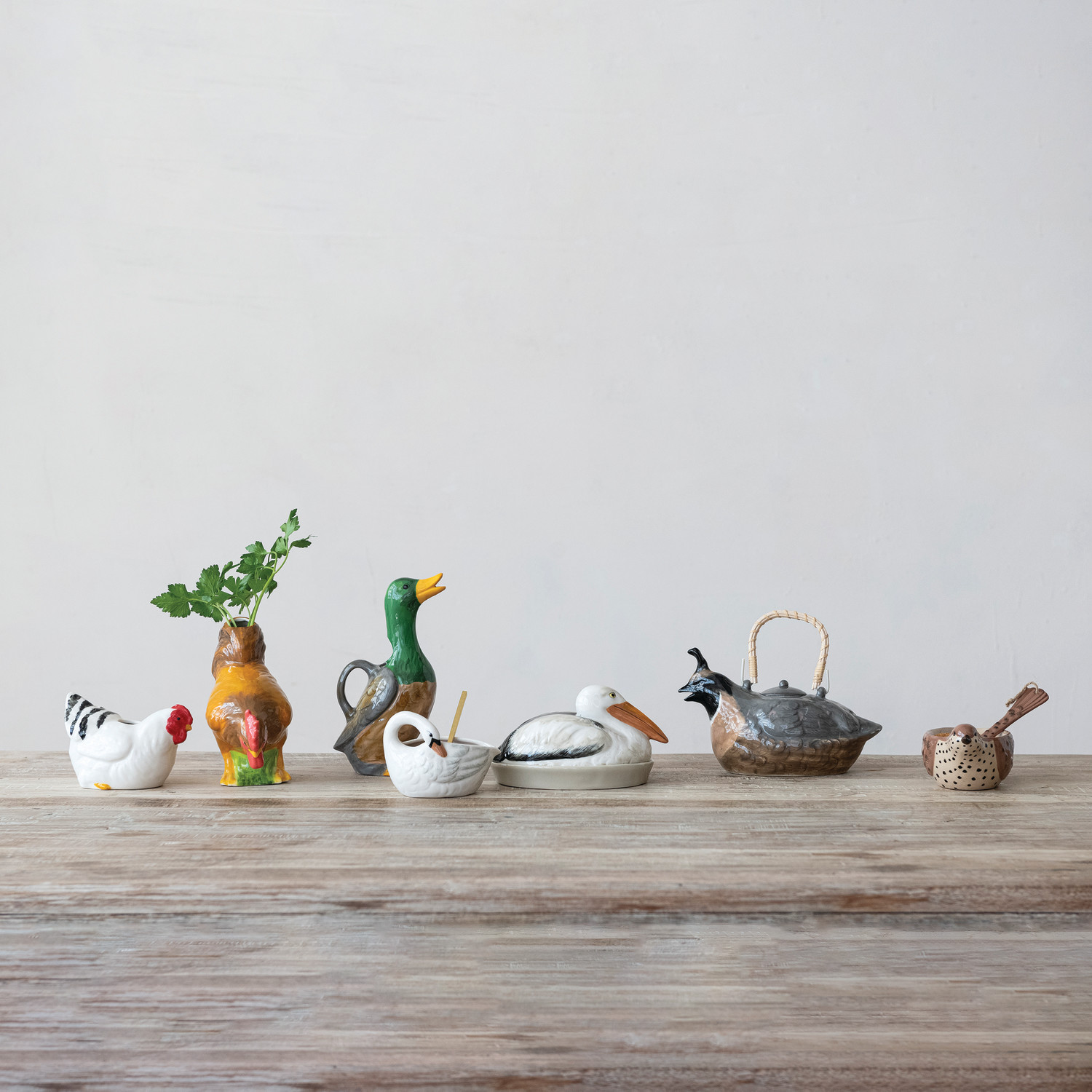 Catalog Name: 7-1/2"L x 5"W x 4"H Hand-Painted Stoneware Pelican Shaped Butter Dish, Multi Color
