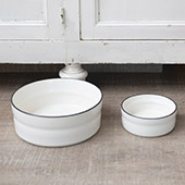 Catalog Name: 6" Round x 2-1/2"H 17 oz./2 Cup Stoneware Pet Bowl w/ Black Rim, White