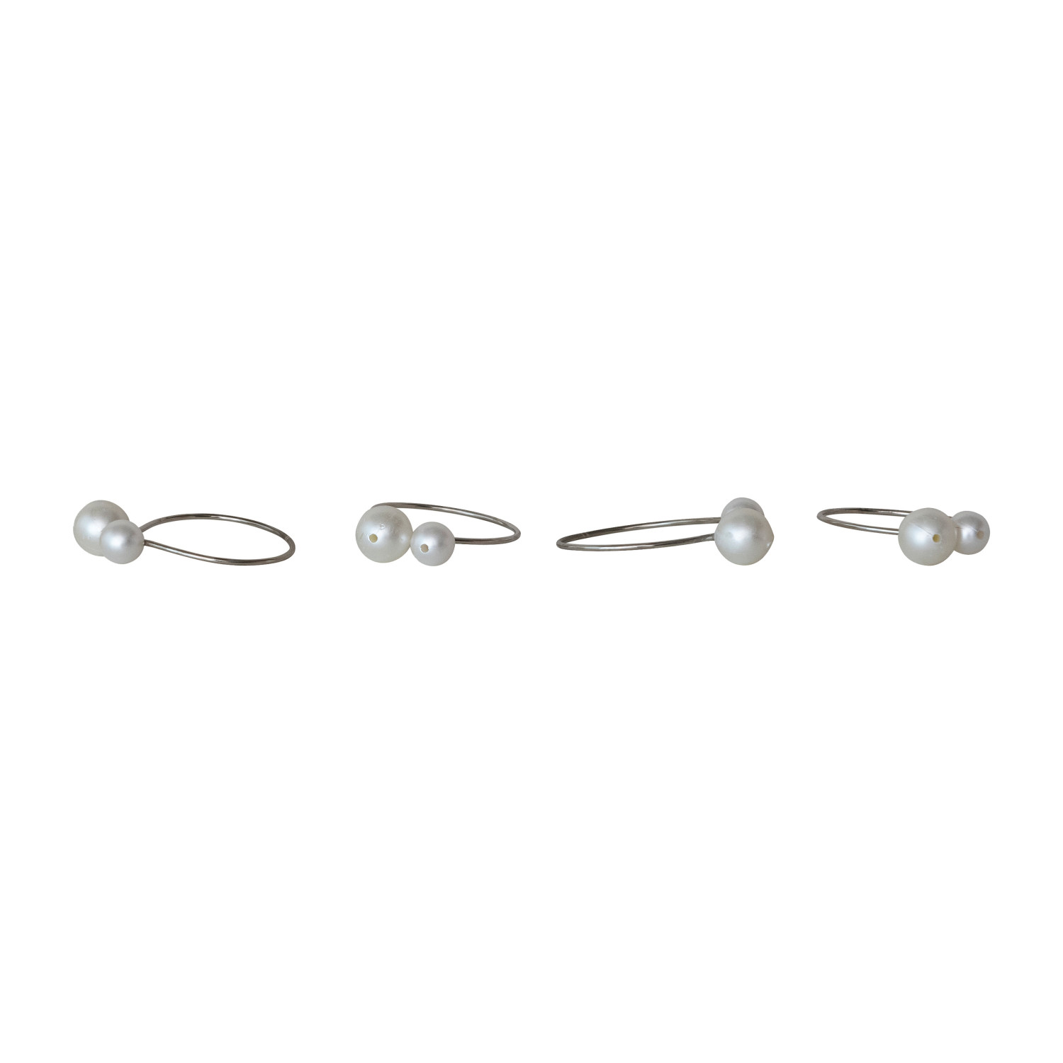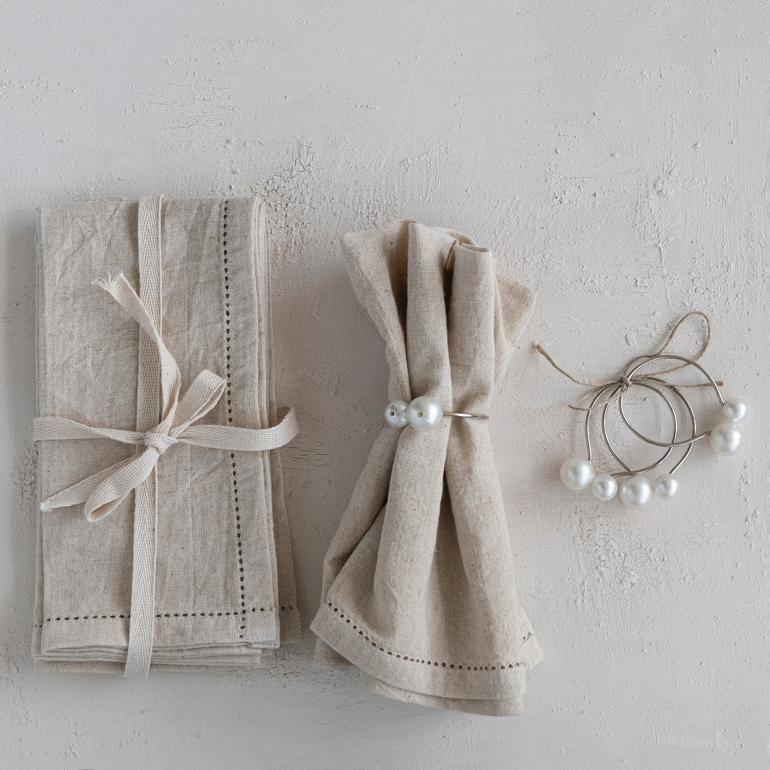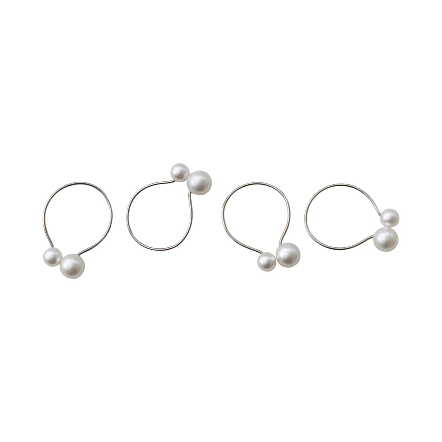 Metal & Faux Pearl Napkin Rings & Ivory Color, Set of 4 Tied with Jute