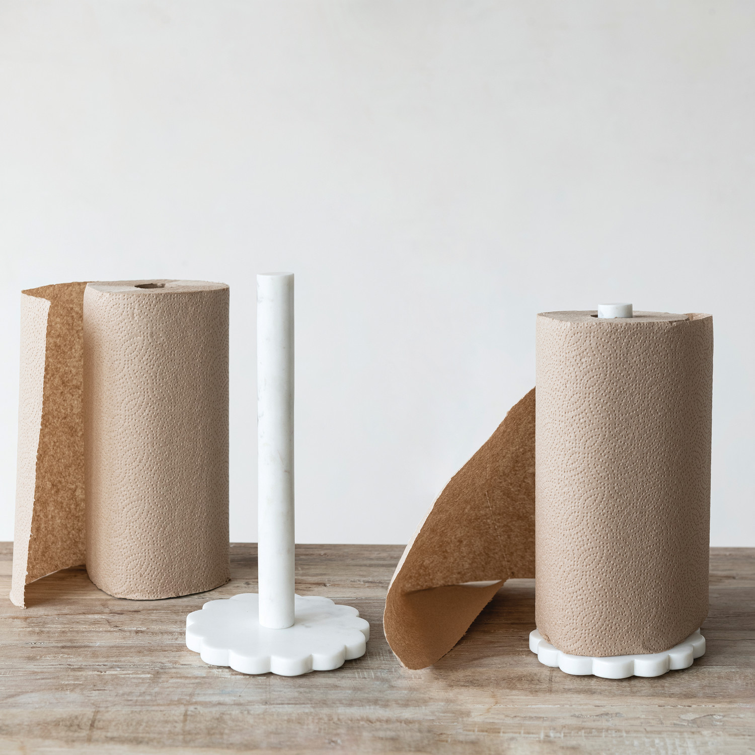 Catalog Name: 6" Round x 11-1/2"H Marble Scalloped Paper Towel Holder, White