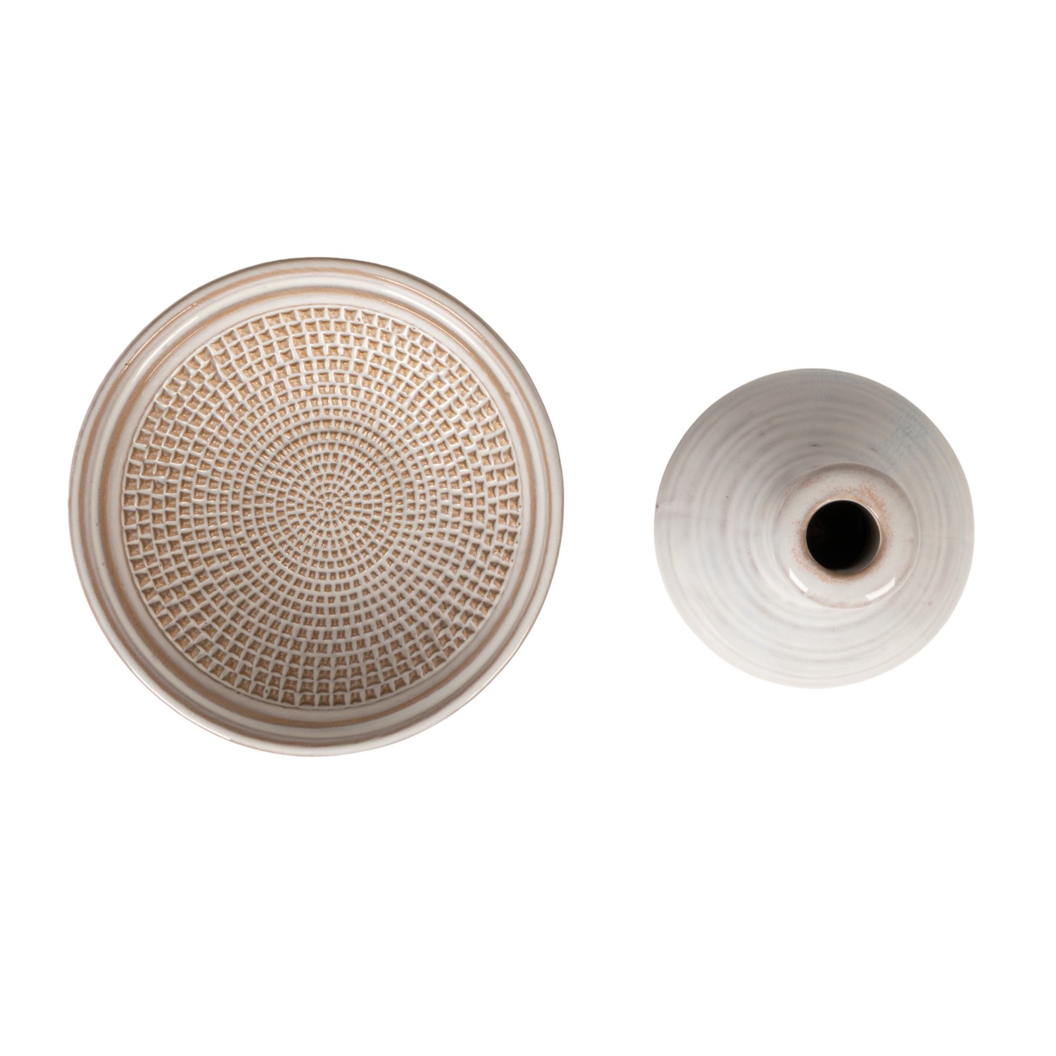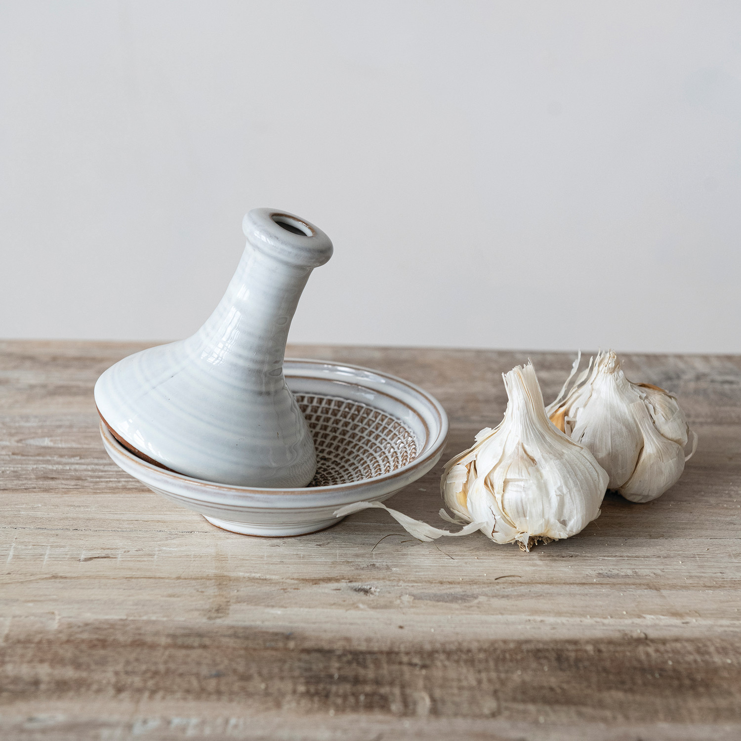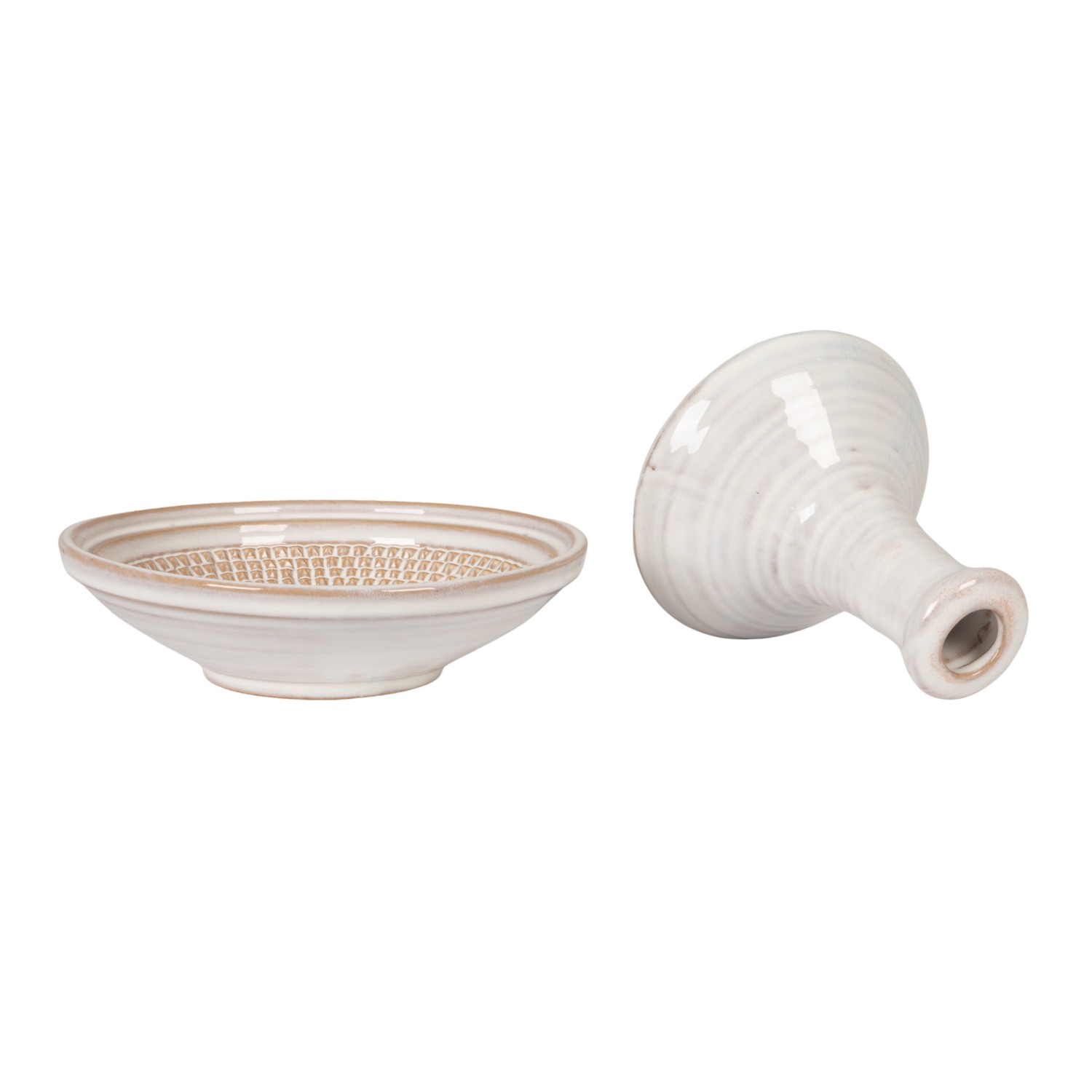 Round Stoneware Mortar & Pestle, White, Set of 2 (Each One Will Vary)