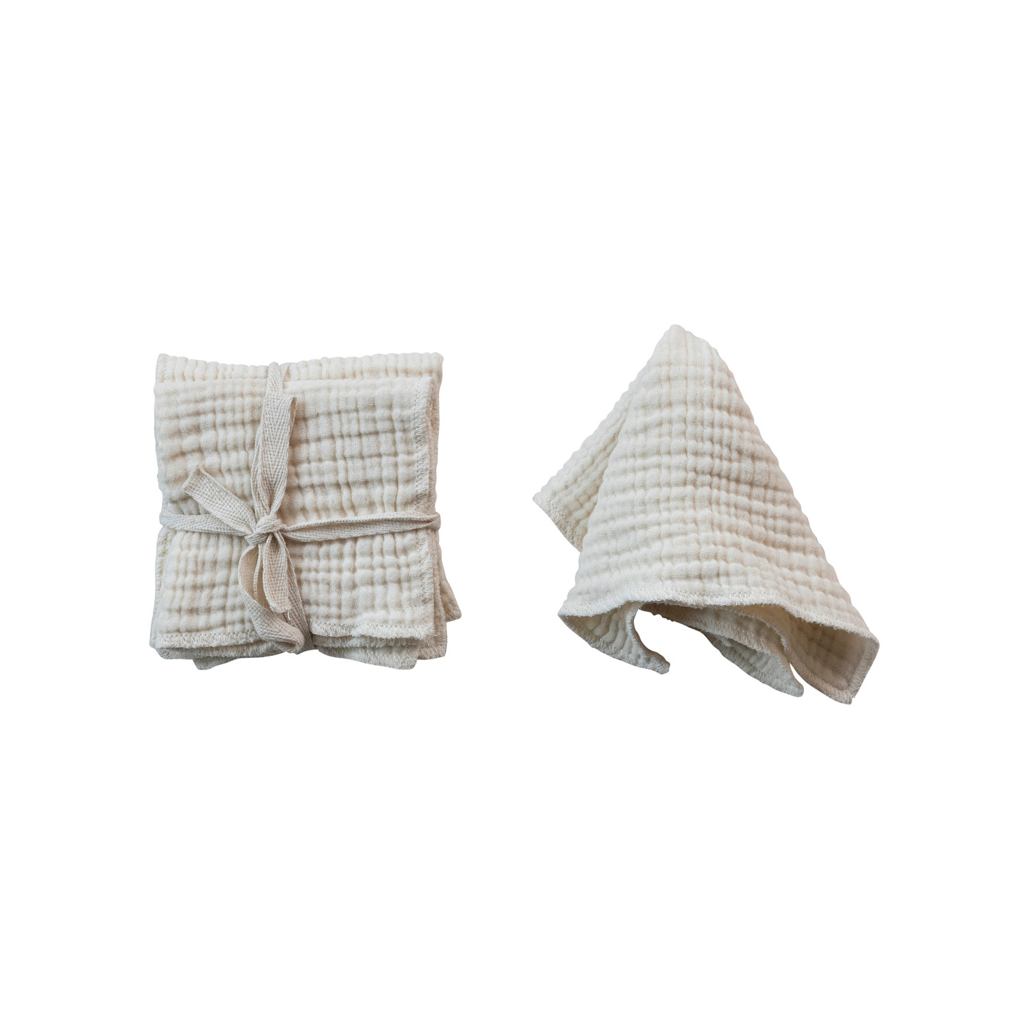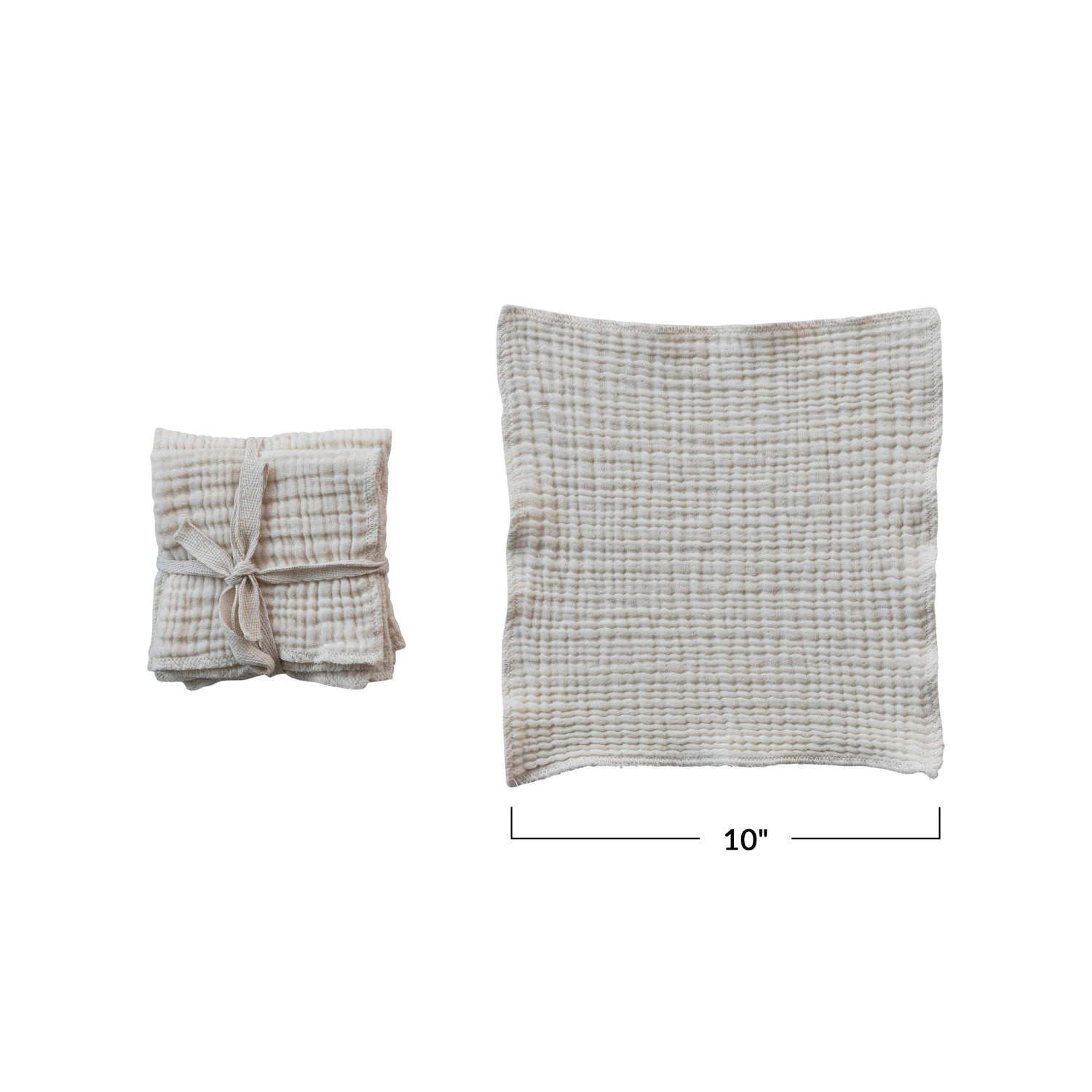 Catalog Name: 10" Square Cotton Double Cloth Dish Cloths, Cream Color, Set of 4 Tied w/ Cotton Tape