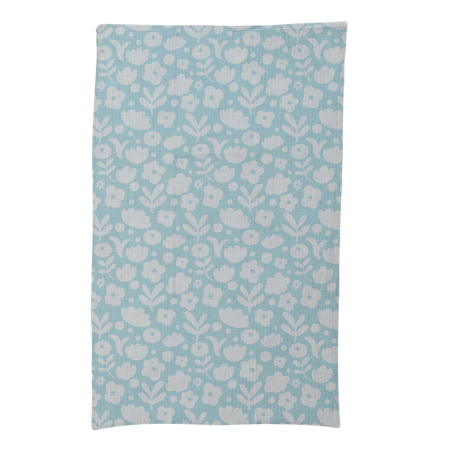 Catalog Name: 30"L x 18"W Printed Recycled Microfibre Tea Towel w/ Floral Pattern, Mint Color & White