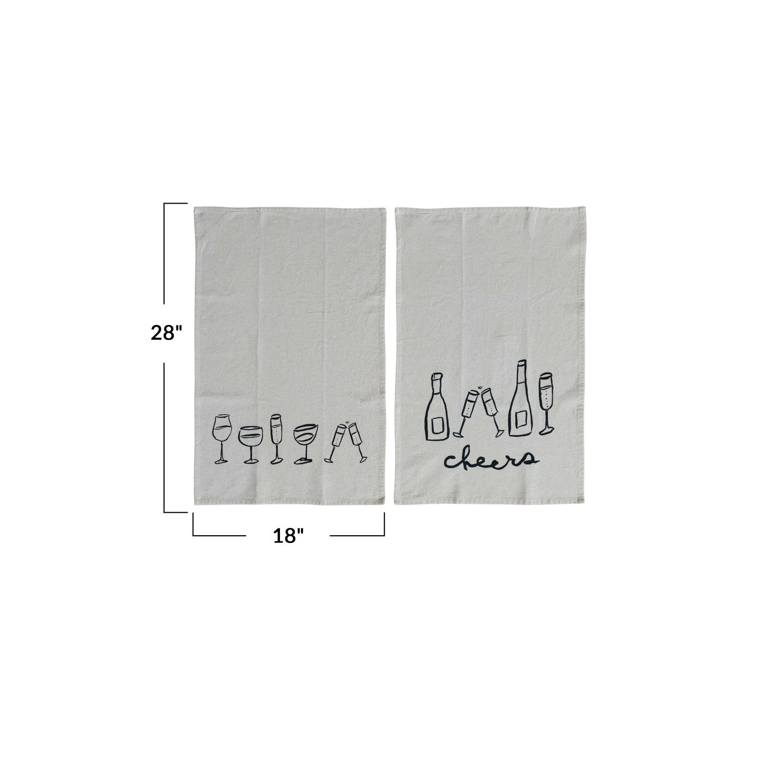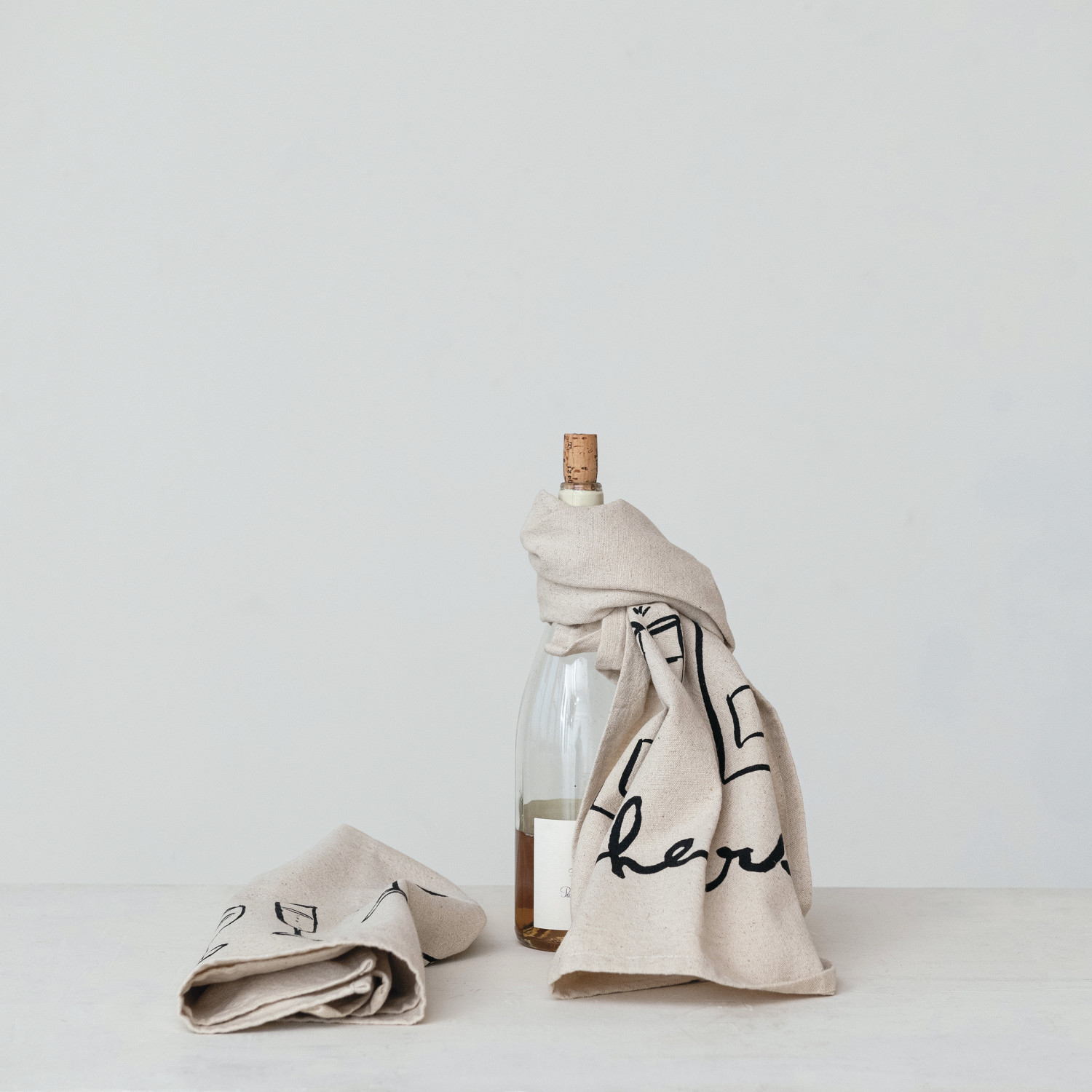 Cotton & Linen Printed Tea Towel w/ Wine Art, 2 Styles