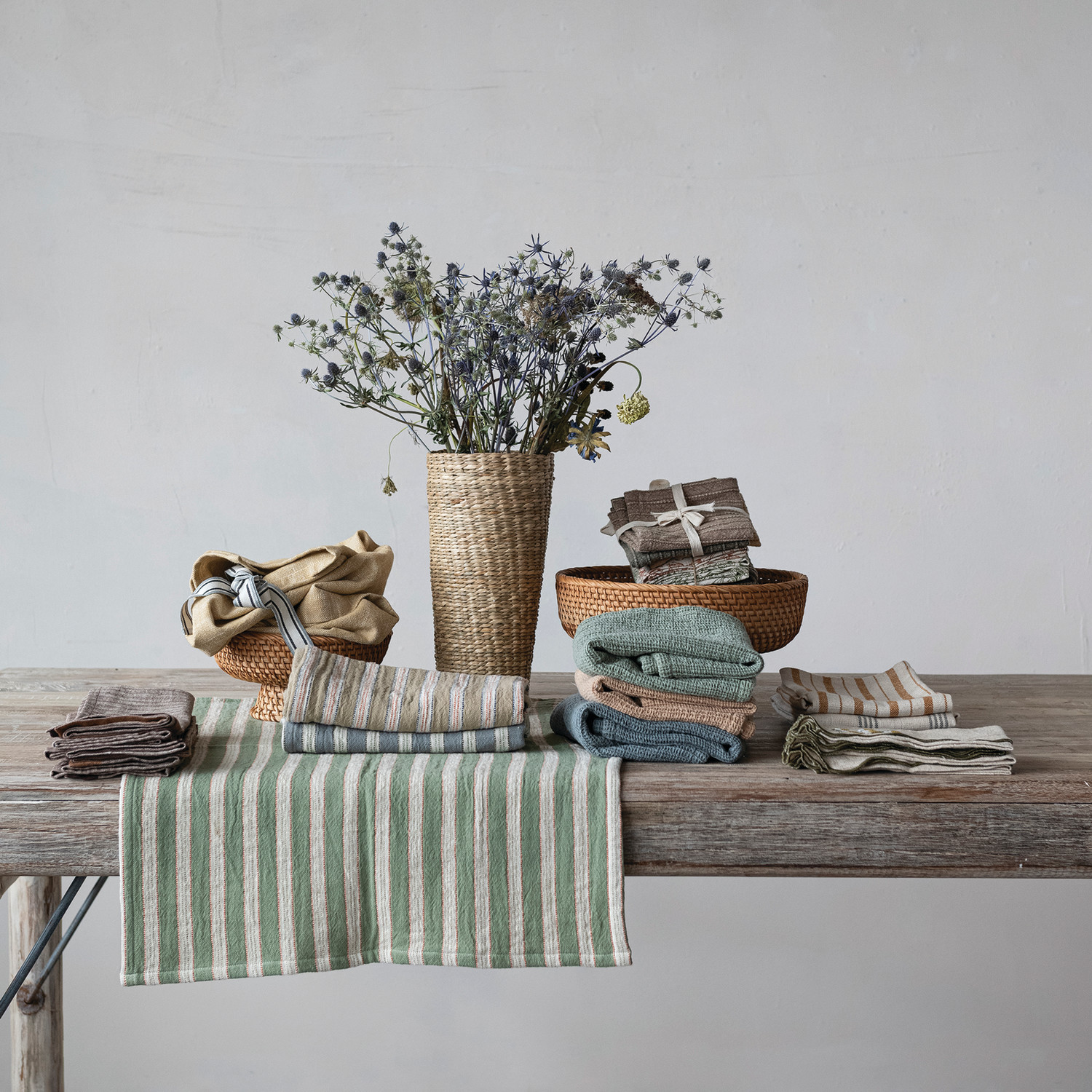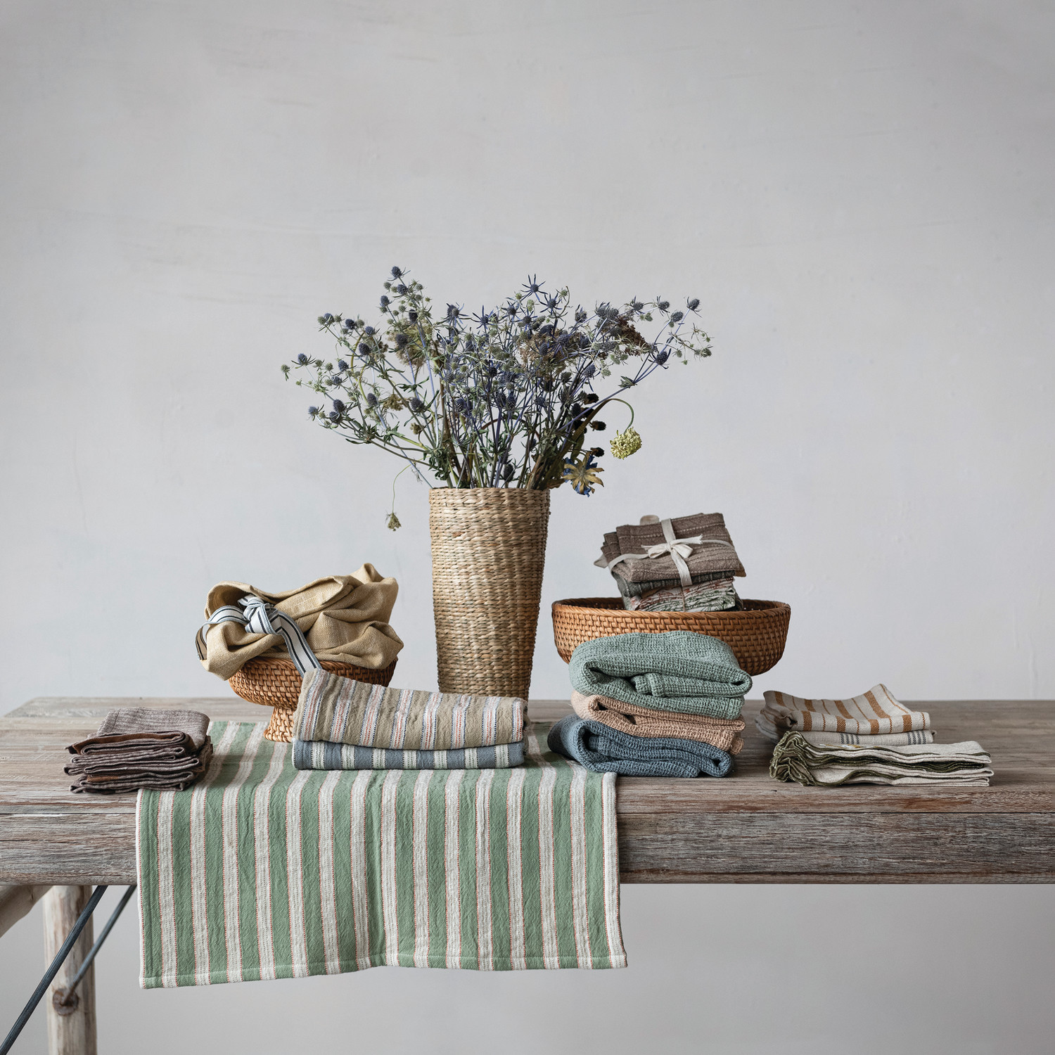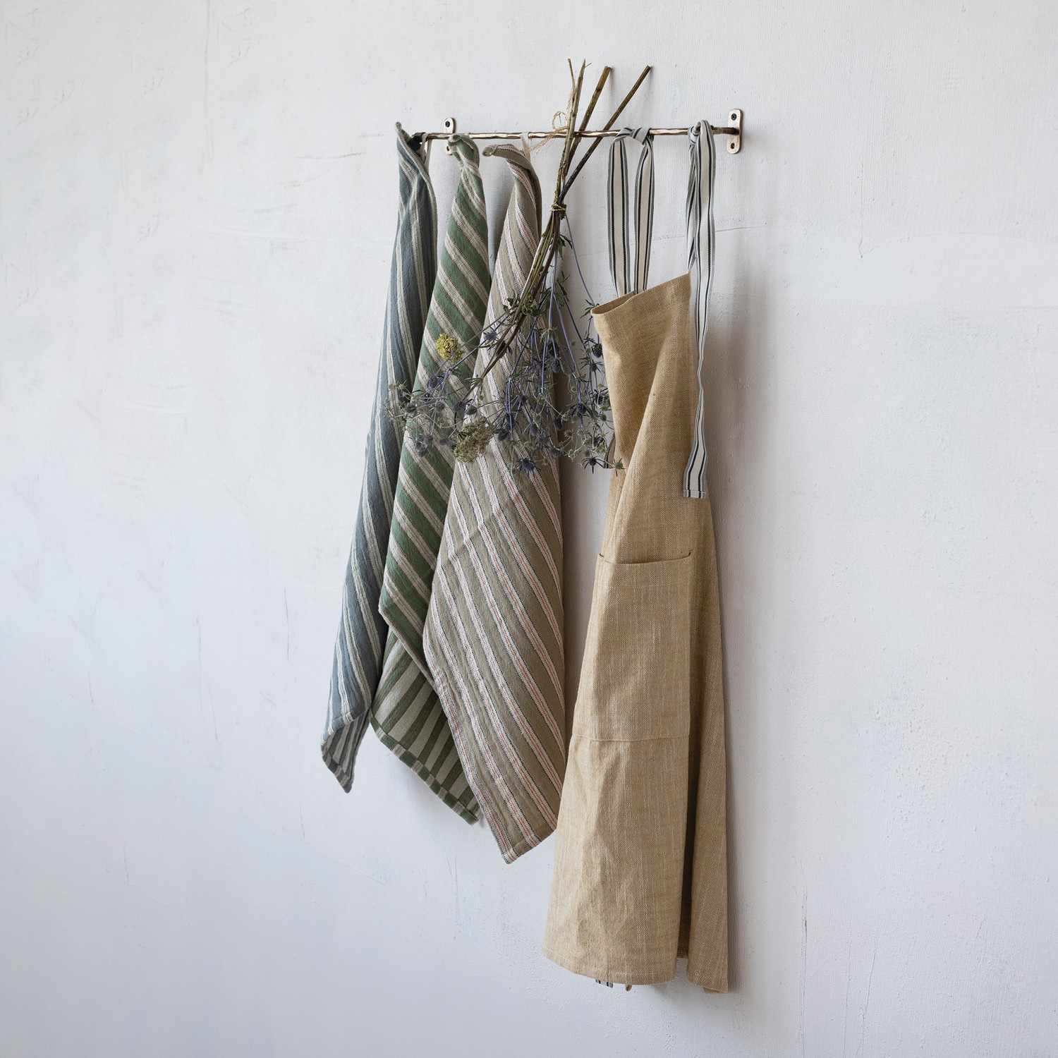 Woven Cotton Apron with Striped Straps & 2 Pockets