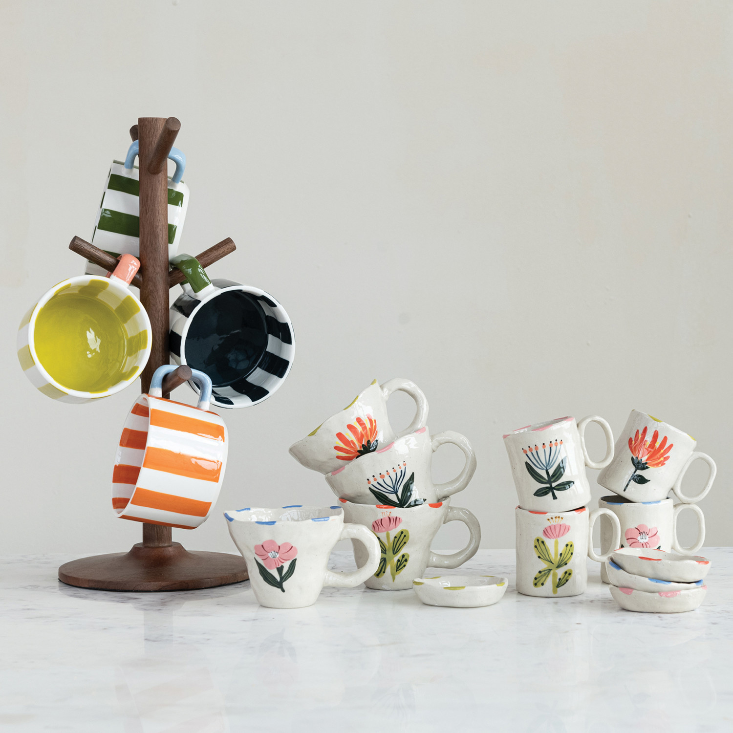 14 oz. Hand-Painted Stoneware Striped Mug, 4 Colors