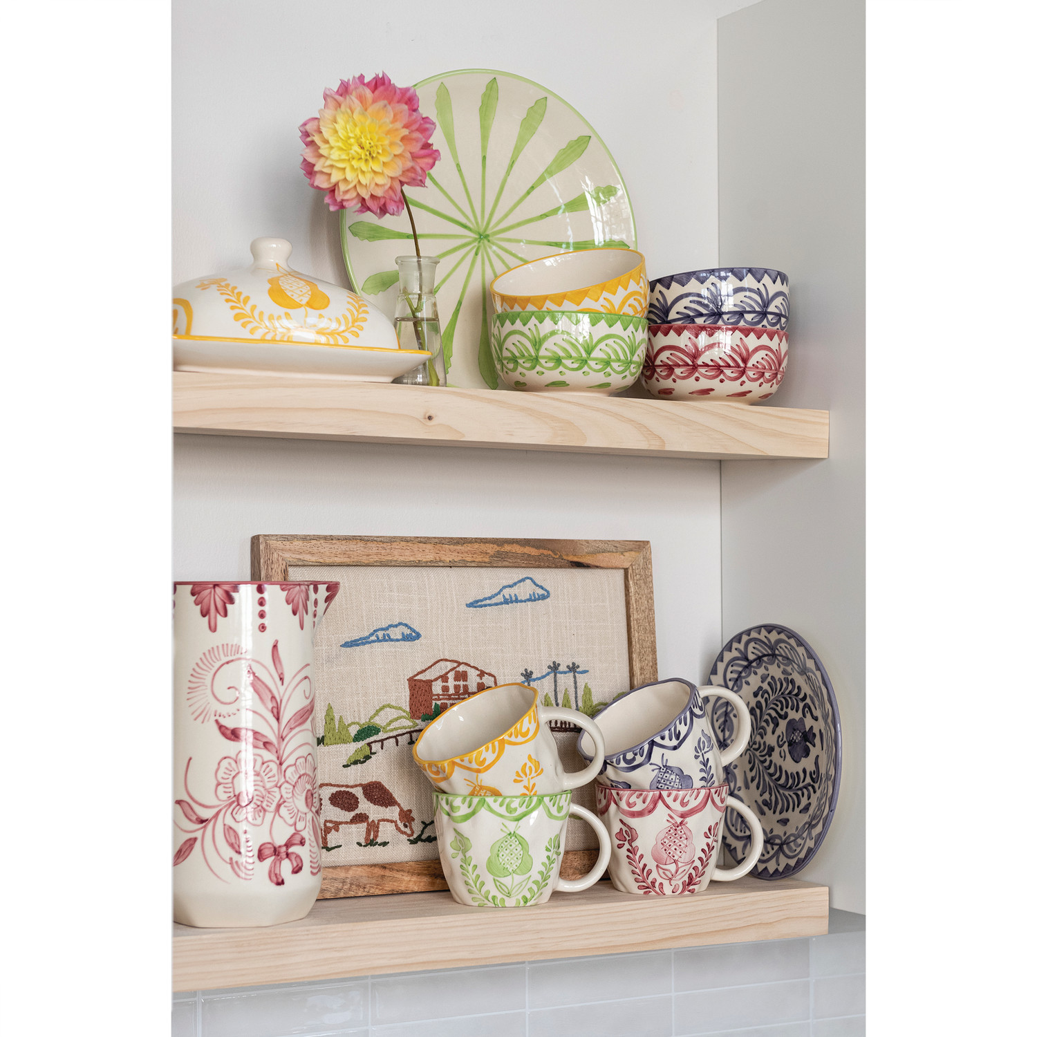 12 oz. Hand-Painted Stoneware Organic Shaped Mug with Botanical Design, 4 Colors