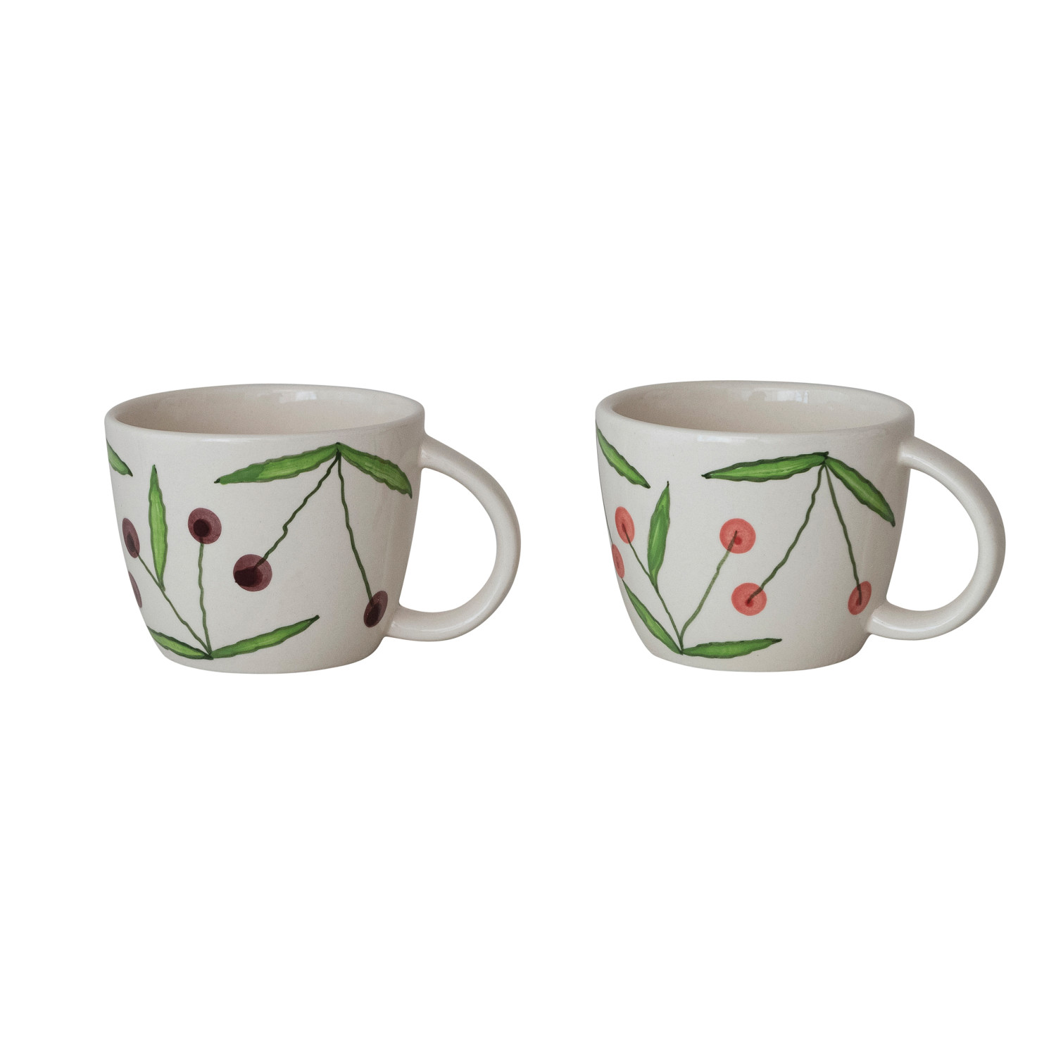 14 oz. Hand-Painted Stoneware Mug with Cherries, 2 Colors (Each One Will Vary)