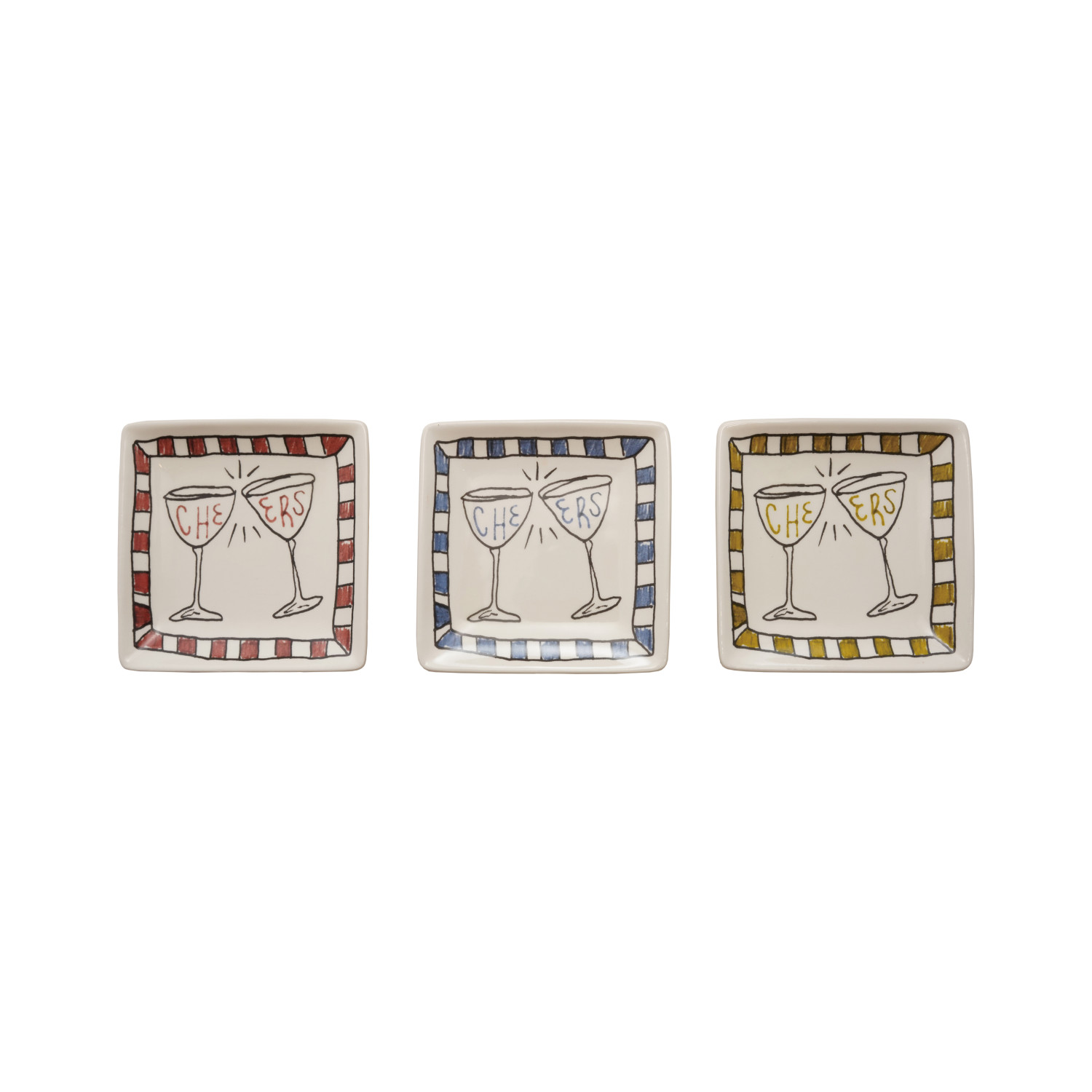 Catalog Name: 5" Square Stoneware Dish "Cheers”, 3 Colors
