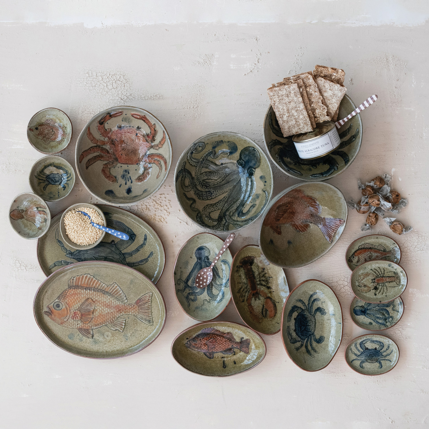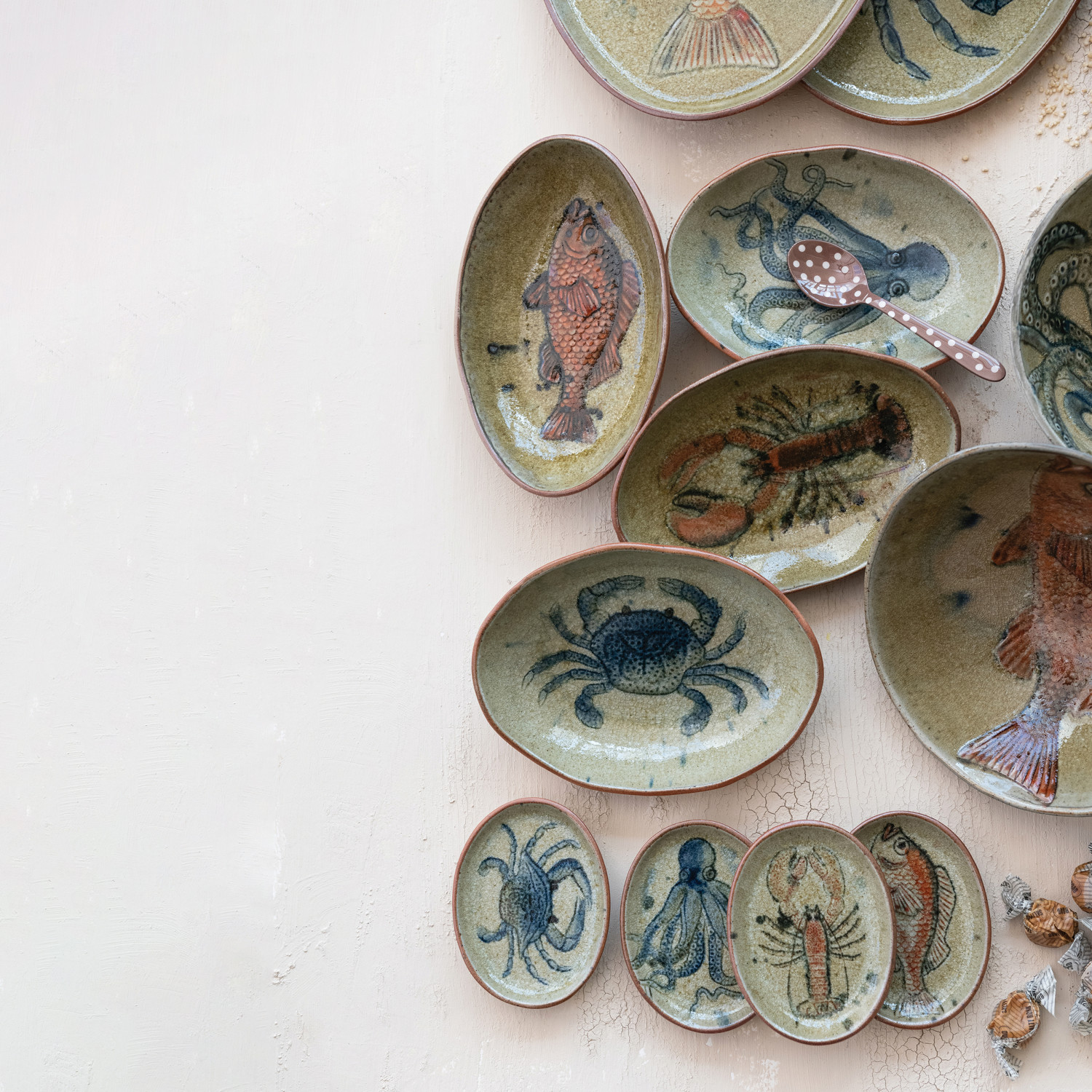 Hand-Painted Stoneware Dish with Sea Life, 4 Styles (Each Varies)