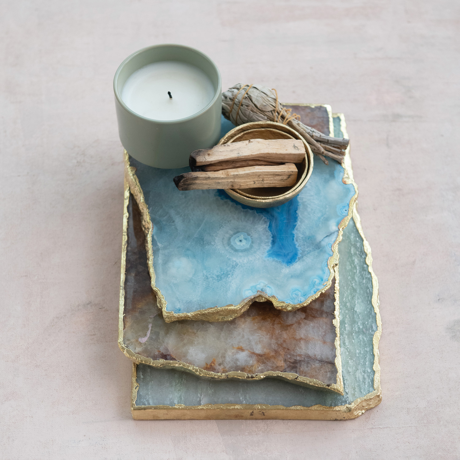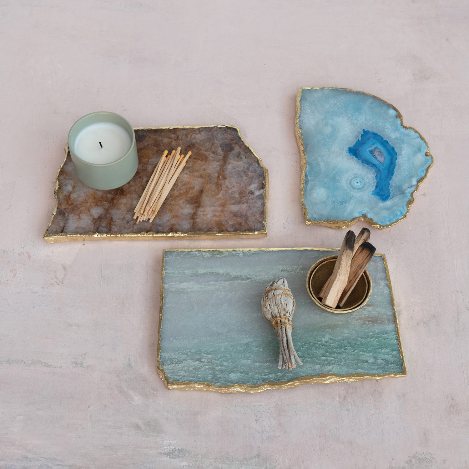 Agate Slab w/ Gold Electroplated Edge, Natural (Each One Will Vary)