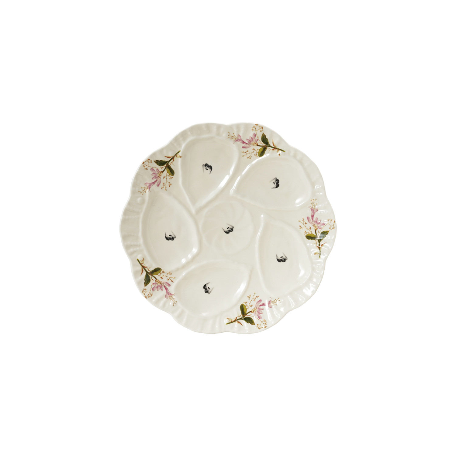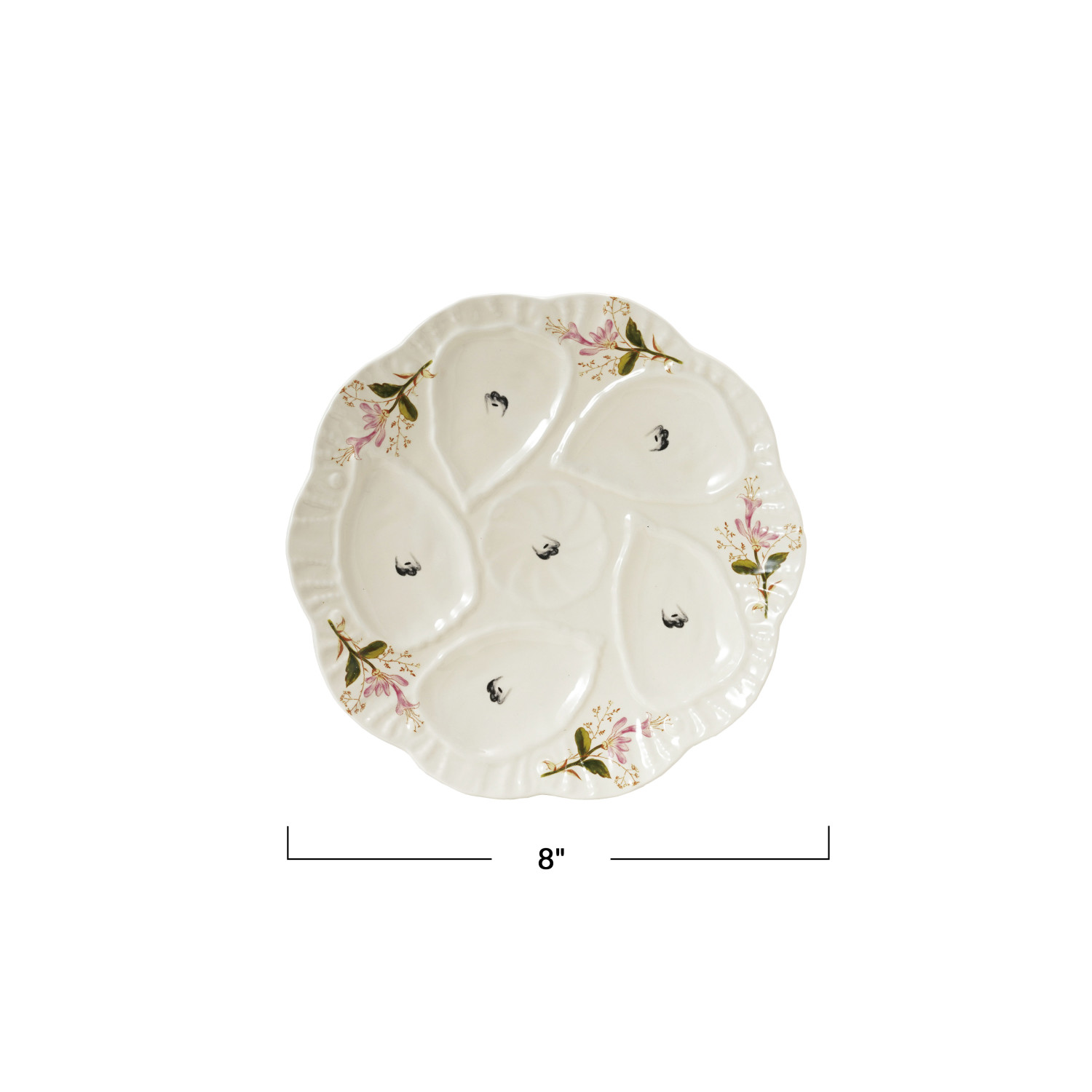 Stoneware Vintage Reproduction Scalloped Oyster Plate w/ Flowers