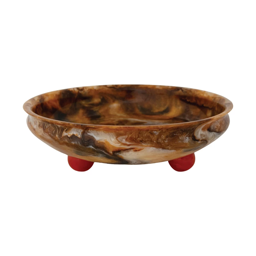 Marbled Resin Bowl with Orange Color Ball Feet, Brown & Cream Color (Each One Will Vary)