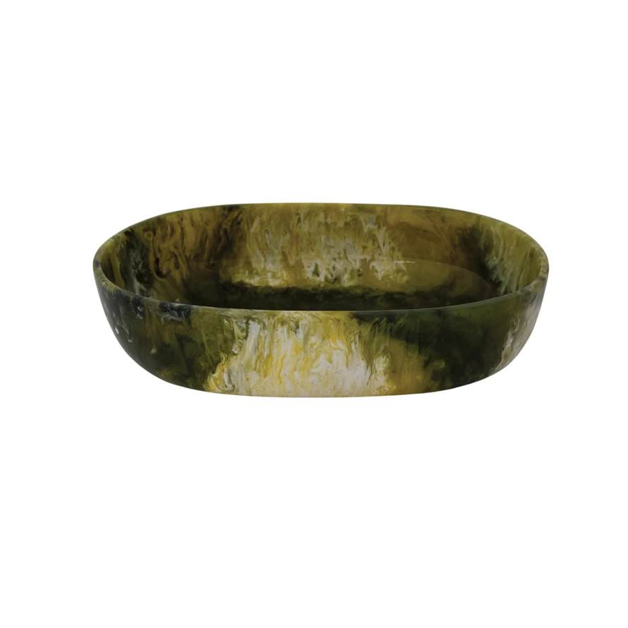 Catalog Name: 13-1/2"L x 8-1/2"W x 3-1/4"H Marbled Resin Bowl, Green (Each One Will Vary)