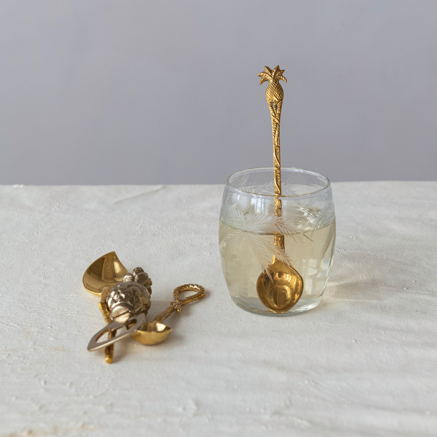 Catalog Name: 7-1/4"L Brass Spoon w/ Pineapple Shaped Handle