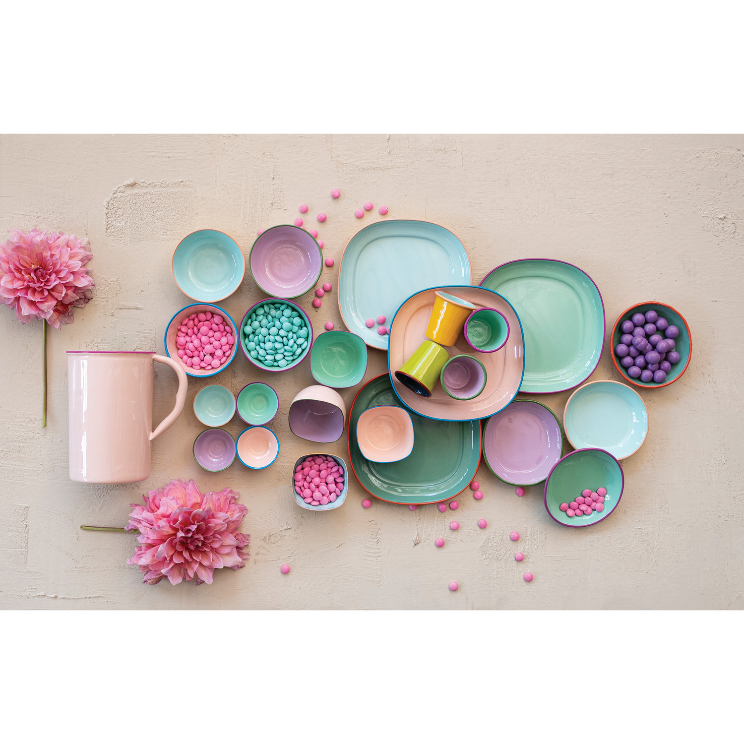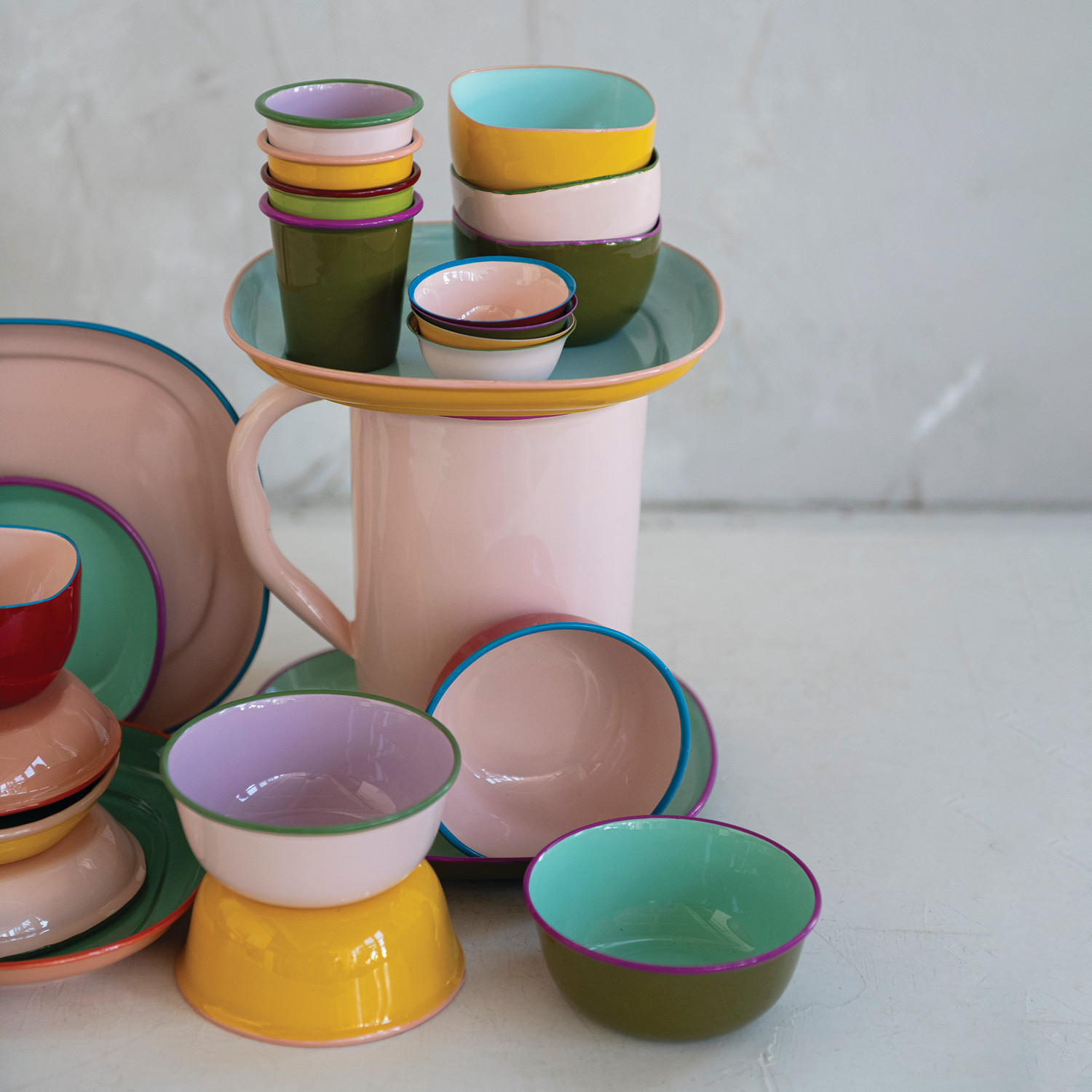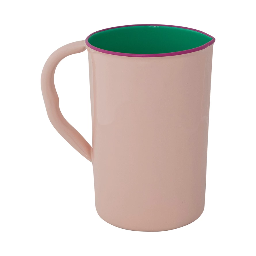 1-1/2 Quart Enameled Stainless Steel Pitcher with Colored Edge, Pink, Green & Fuchsia Color