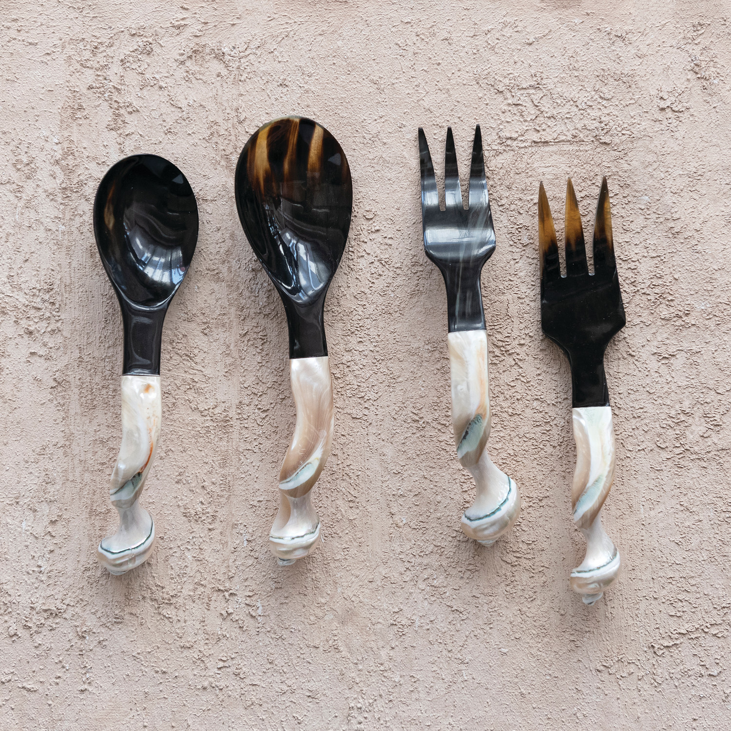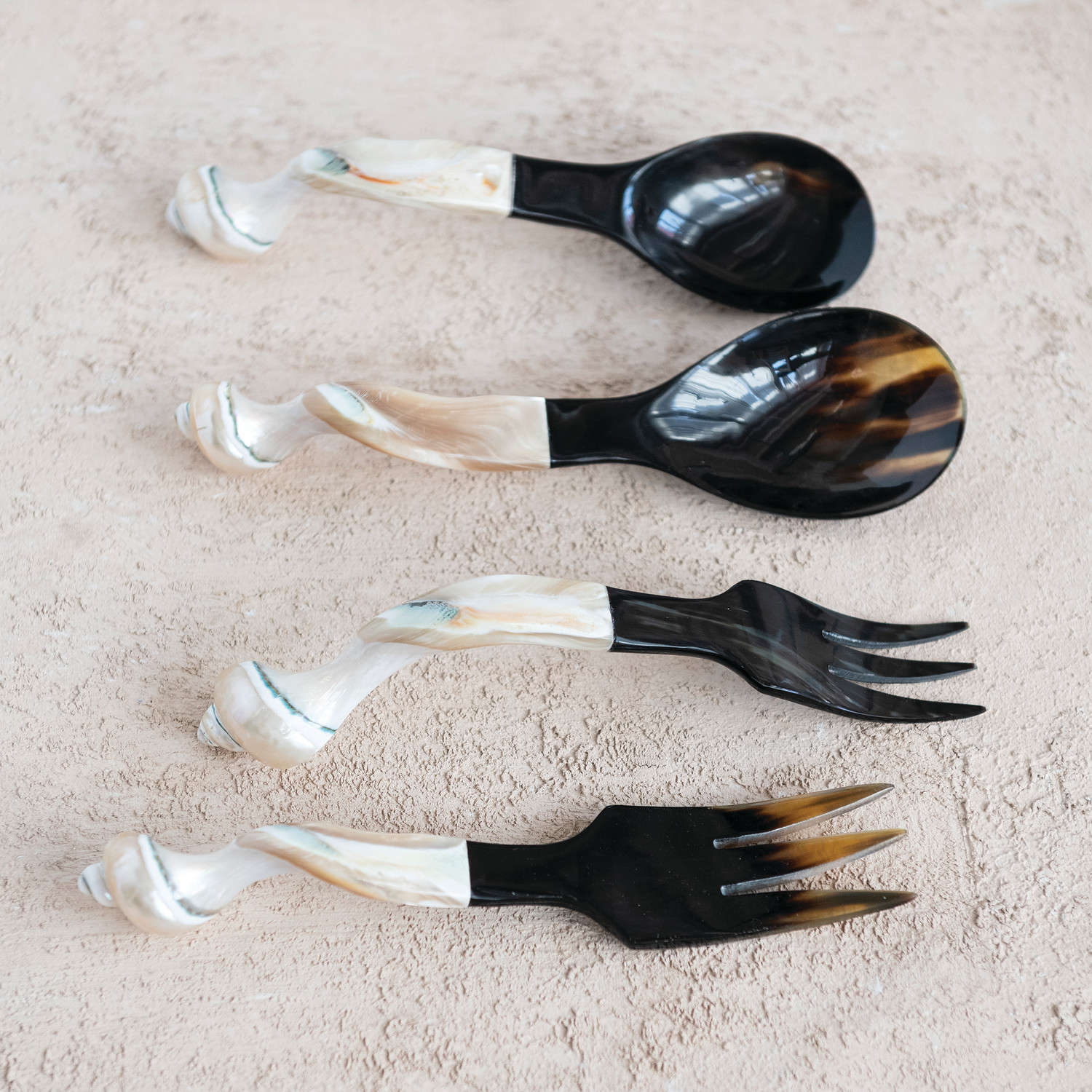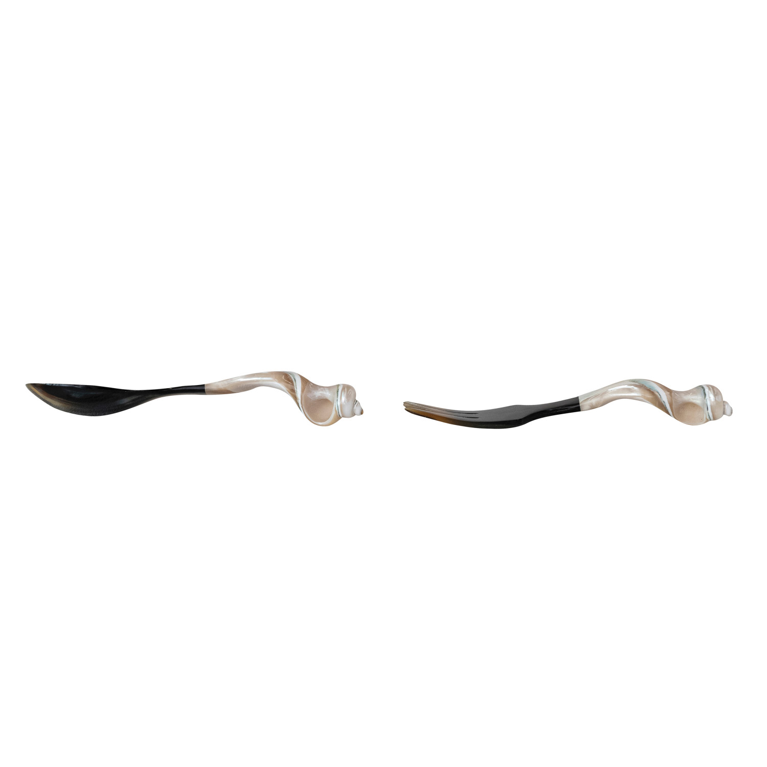 Catalog Name: 9"L Natural Horn Servers w/ Shell Handles, Set of 2 (Each One Will Vary)