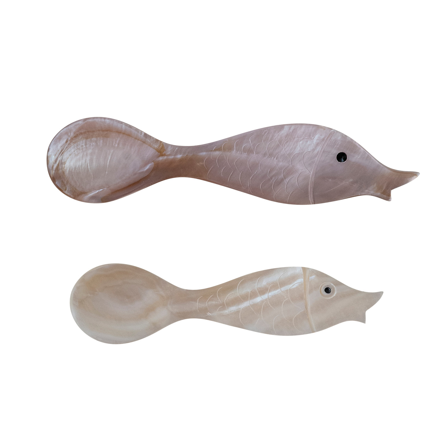 Catalog Name: 4-3/4"L Natural Shell Spoon w/ Fish Shaped Handle (Each One Will Vary)
