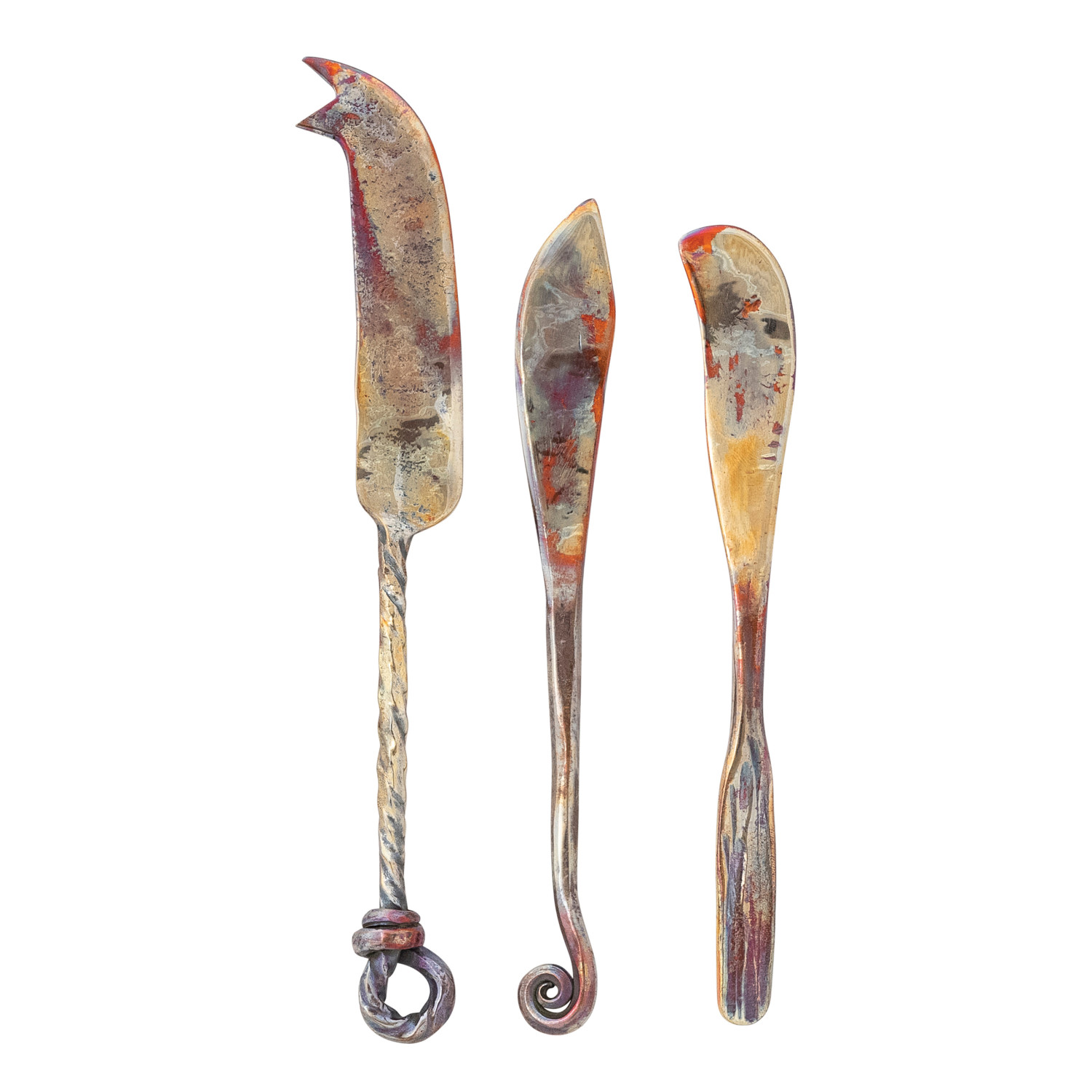 Catalog Name: 5-1/2"L - 6-3/4"L Hand-Forged Copper Canape Knife w/ Shaped Handle, Burnt Finish, 3 Styles