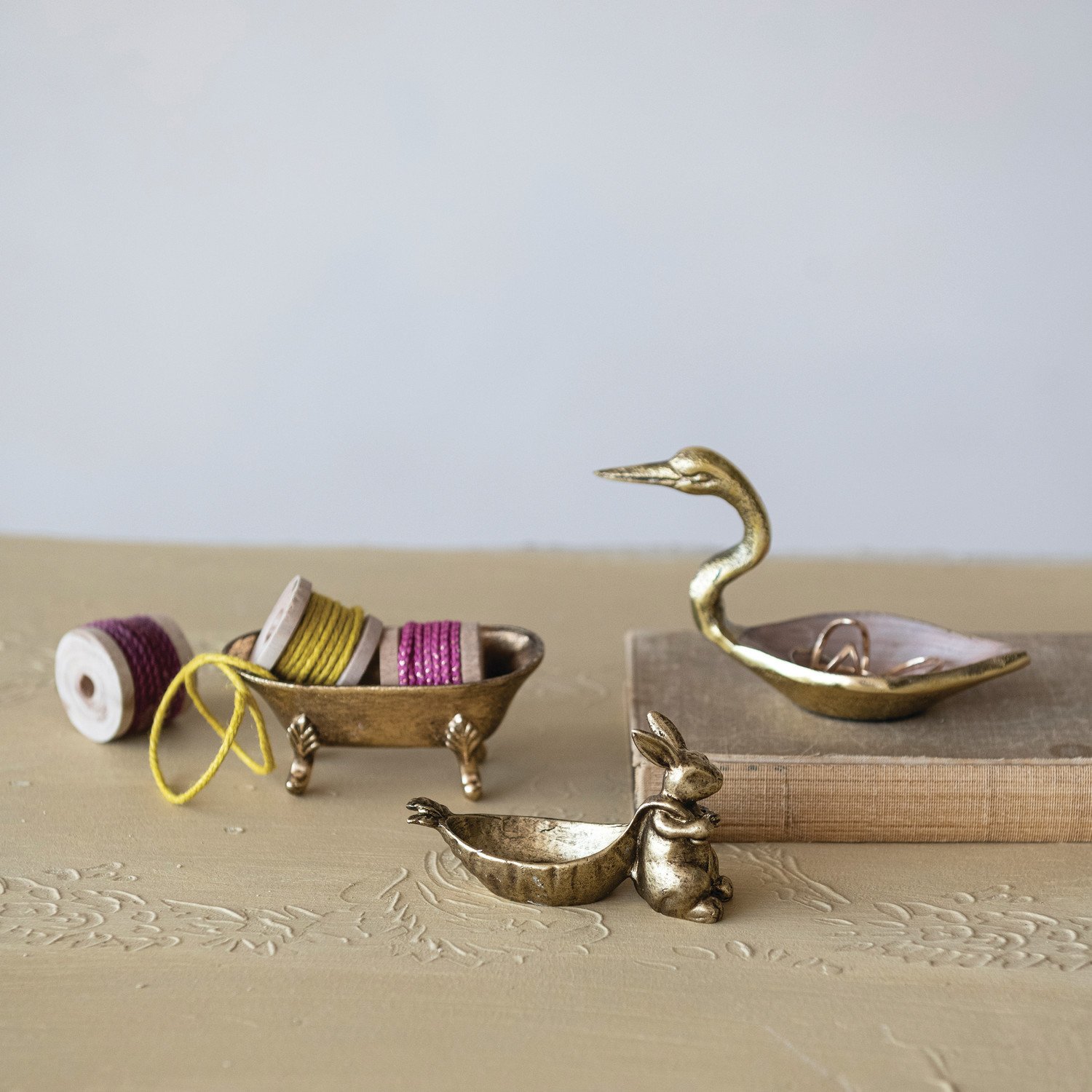Catalog Name: 6-1/4"L x 2-1/4"W Enameled Cast Aluminum Bird Bowl, Antique Gold Finish & Blush Color