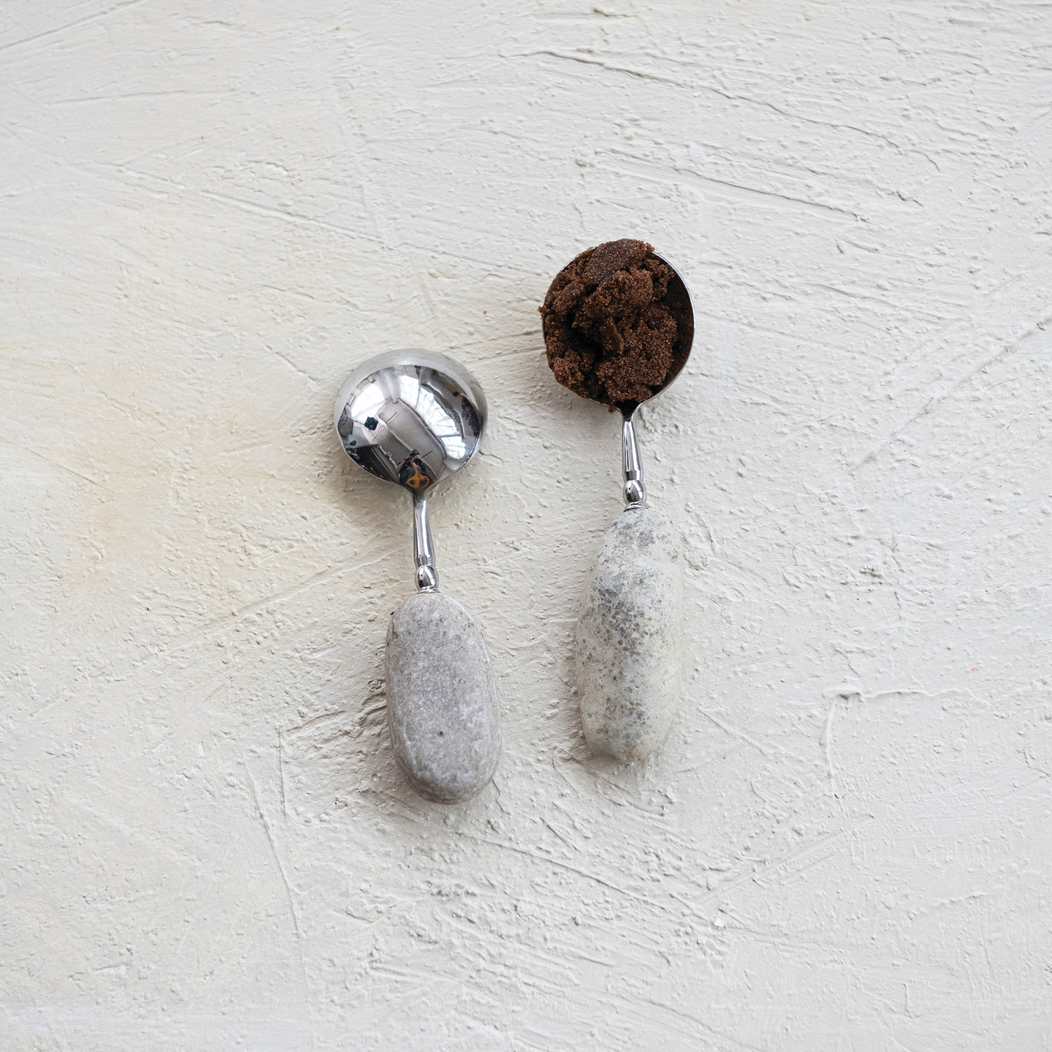 Stainless Steel & Stone Spoon, Natural (Each One Will Vary)