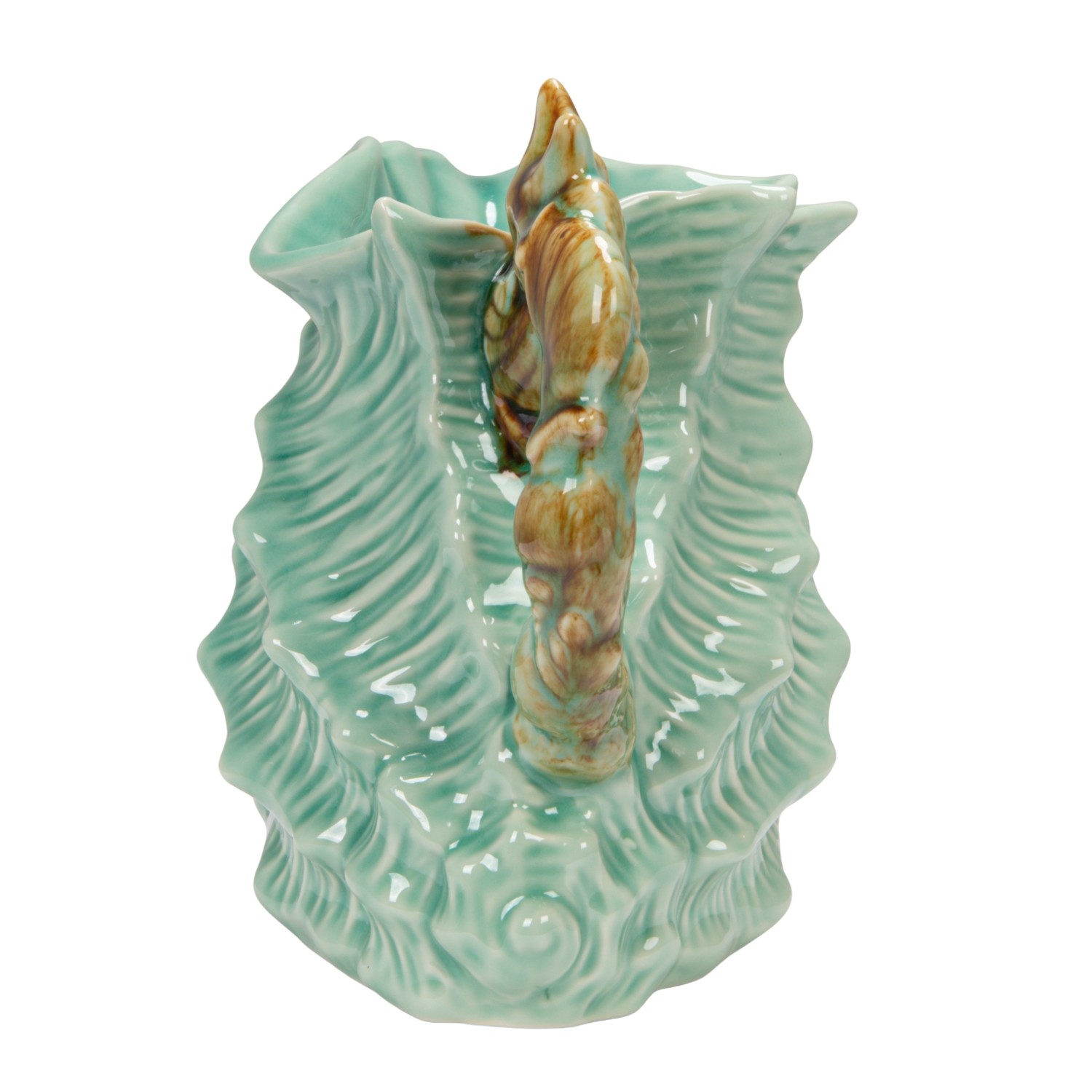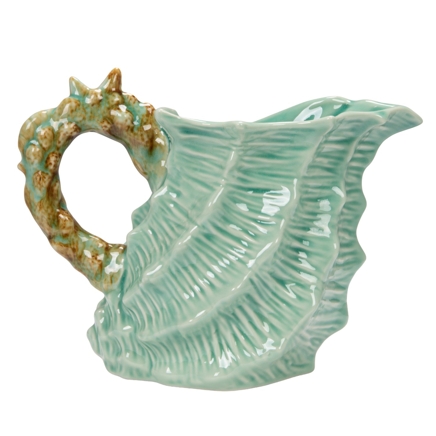 1 Quart Stoneware Shell Shaped Pitcher with Starfish & Shells Handle