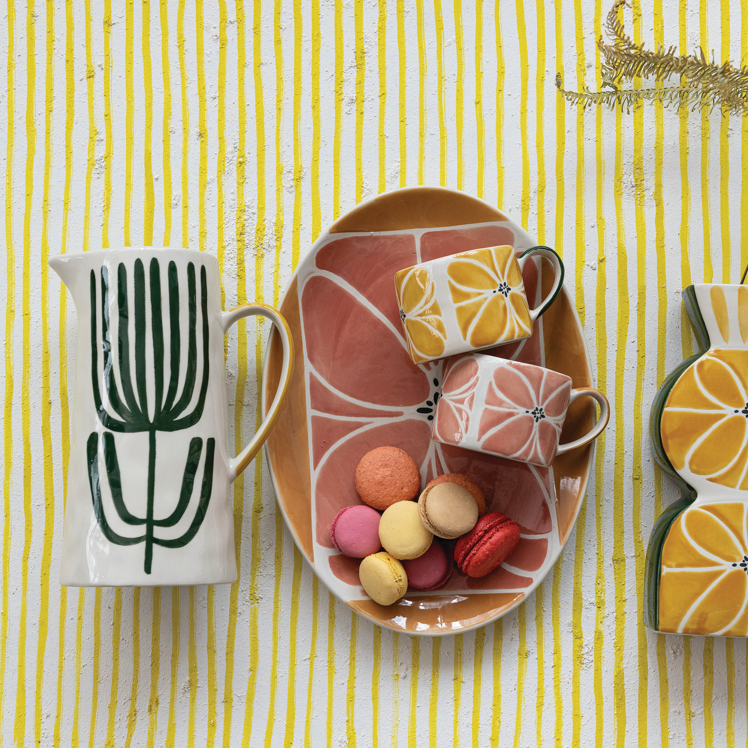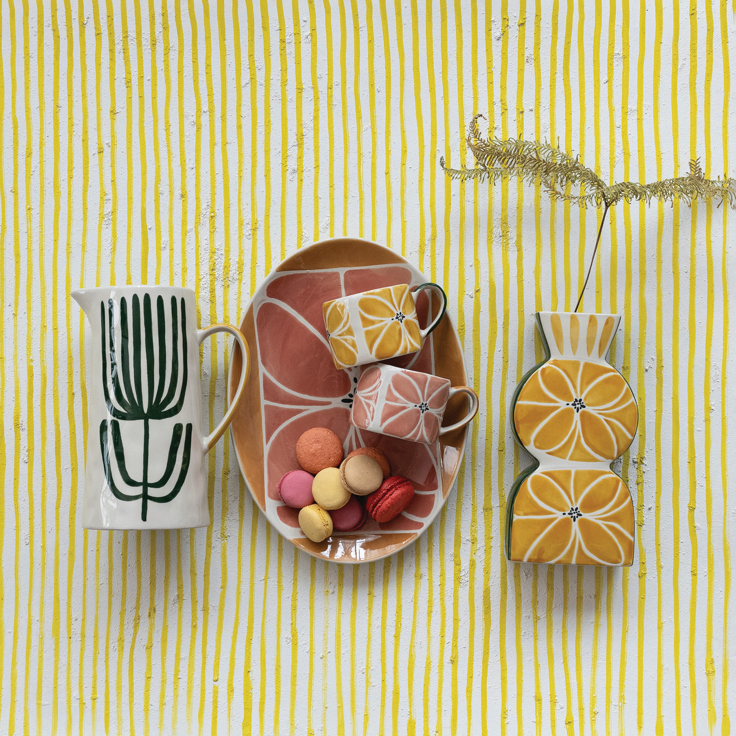 Catalog Name: 13-1/2"L x 10"W Oval Stoneware Platter w/ Wax Relief Design, Multi Color
