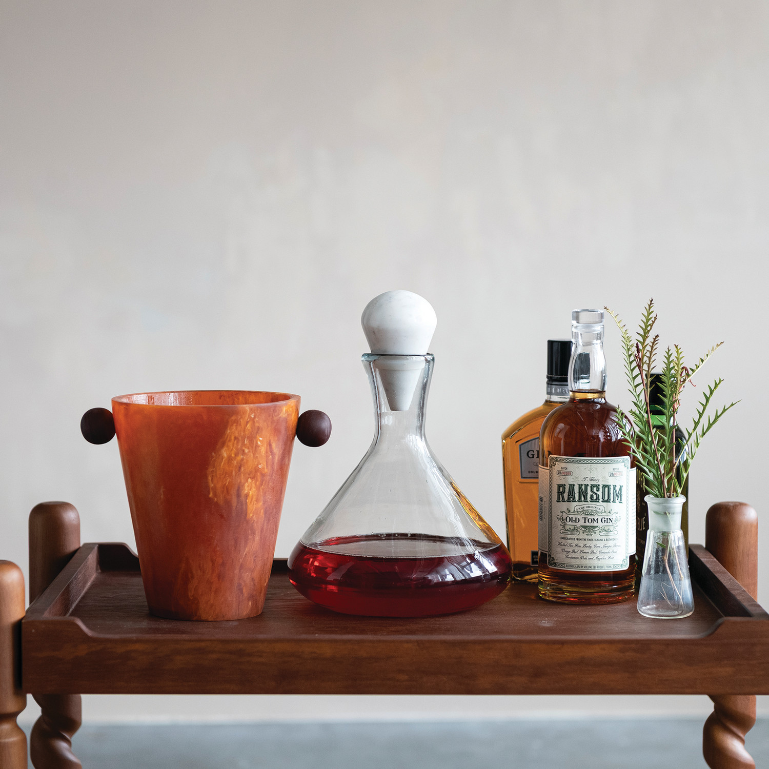 2 Quart Hand-Blown Glass Decanter with White Marble Stopper