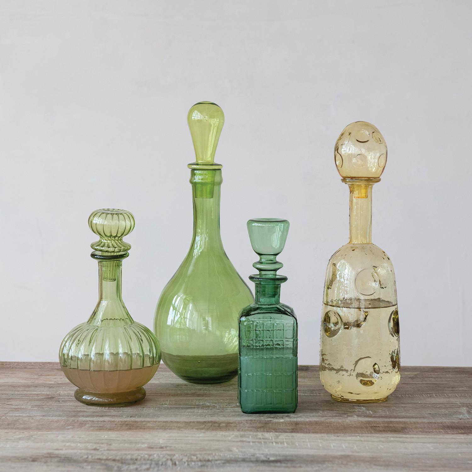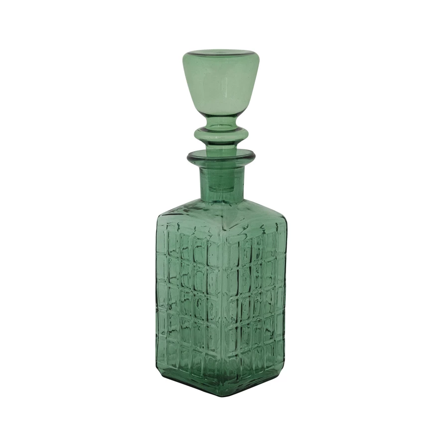 28 oz. Embossed Glass Decanter with Stopper & Grid Pattern, Dark Green