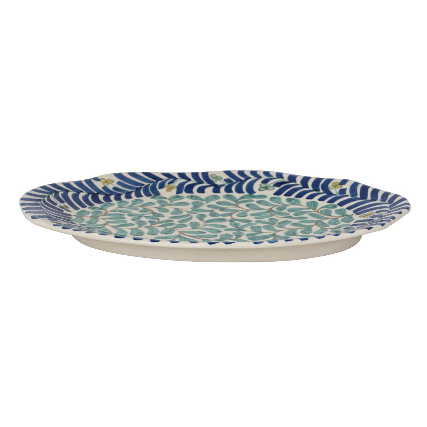 Catalog Name: 17"L x 11-1/4"W Oval Hand-Painted Stoneware Platter w/ Vines Design, Multi Color (Each One Will Vary)