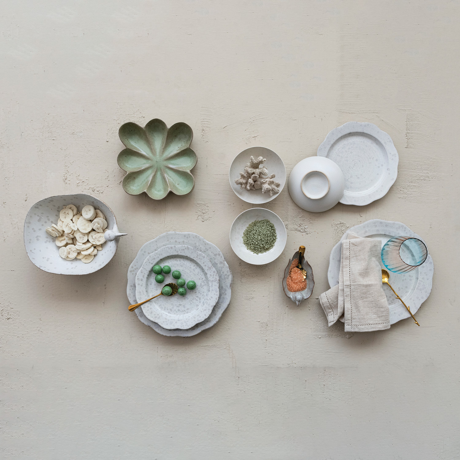 Catalog Name: 5-1/4"L x 3-1/4"W x 2-1/2"H Stoneware Bird Shaped Dish, Reactive Glaze, White (Each One Will Vary)
