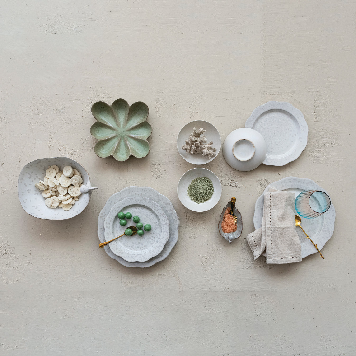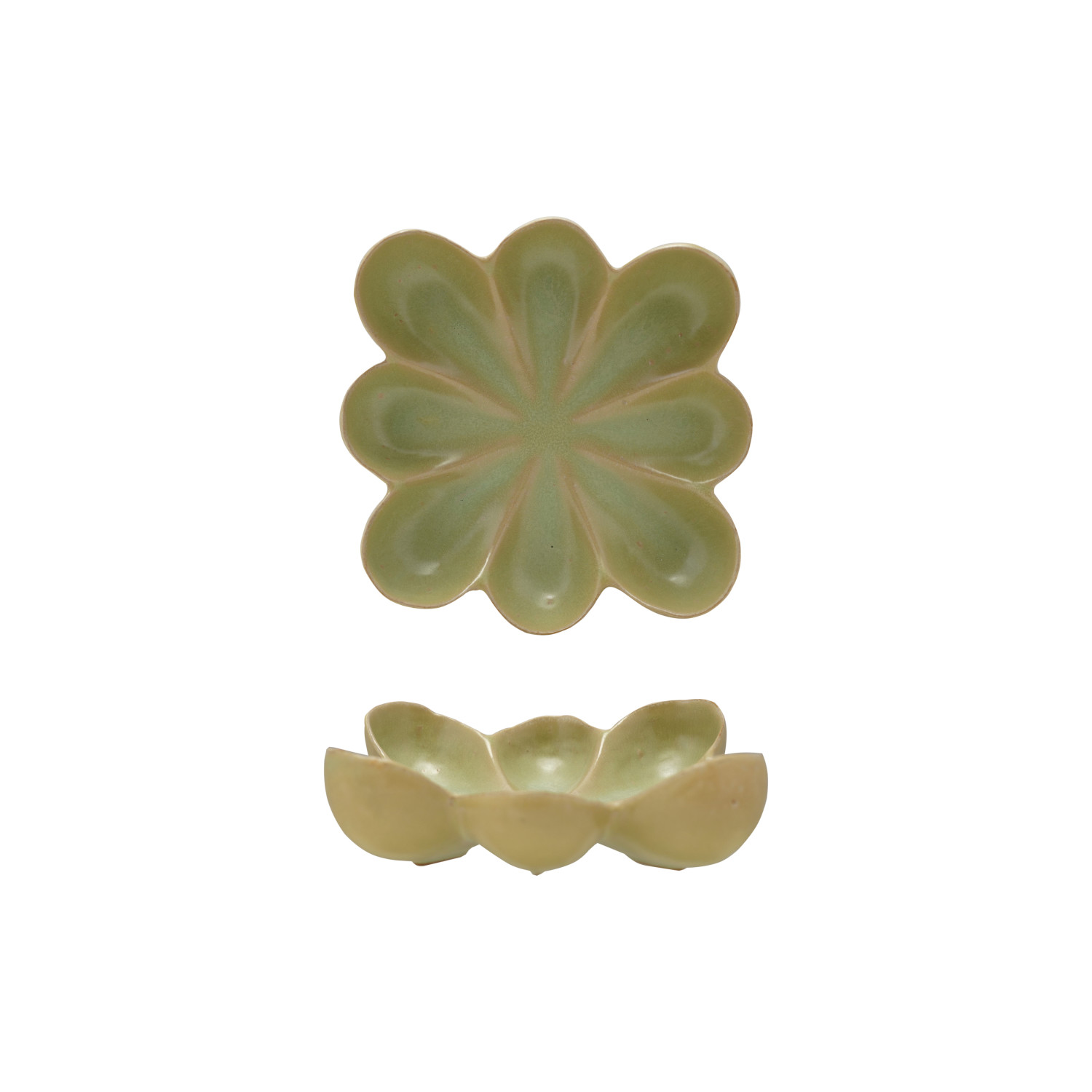 Stoneware Flower Shaped Dish, Green (Each One Will Vary)