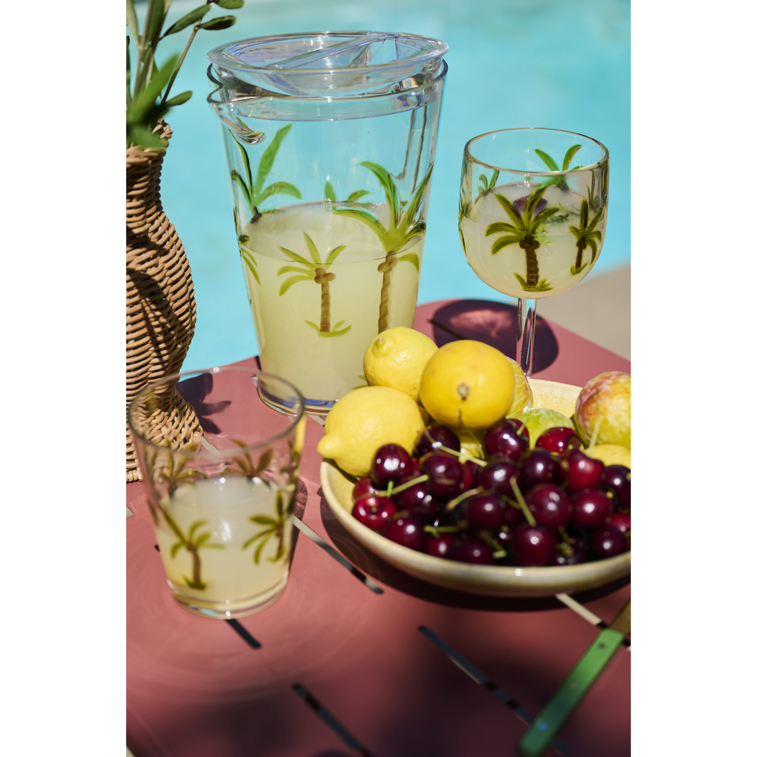 2-1/2 Quart Acrylic Pitcher with Palm Trees & Lid