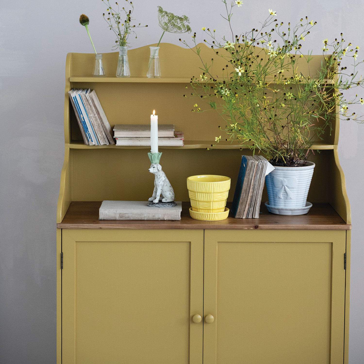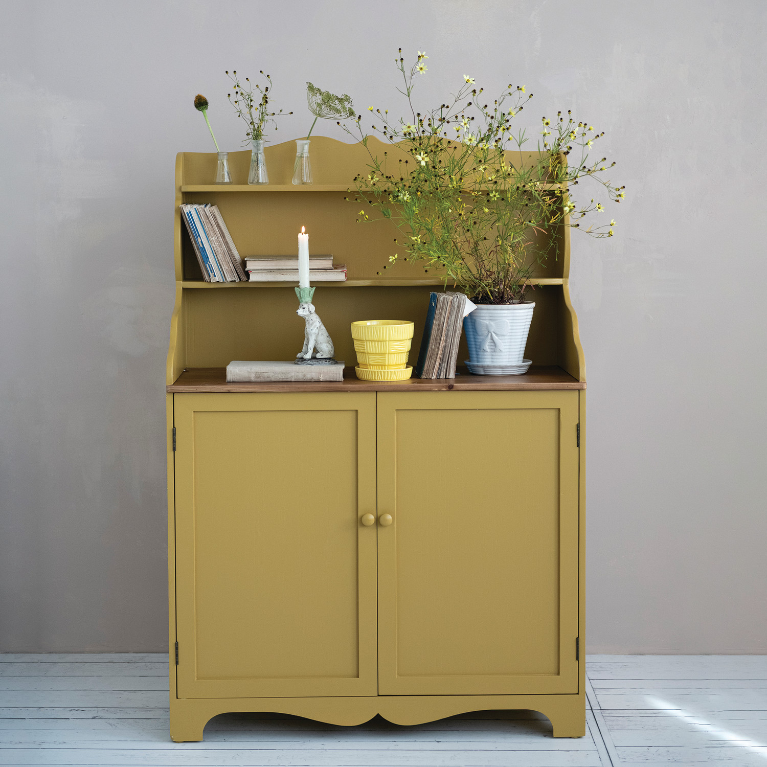 MDF & Wood Cabinet with 2 Shelves & 2 Doors, Yellow & Natural