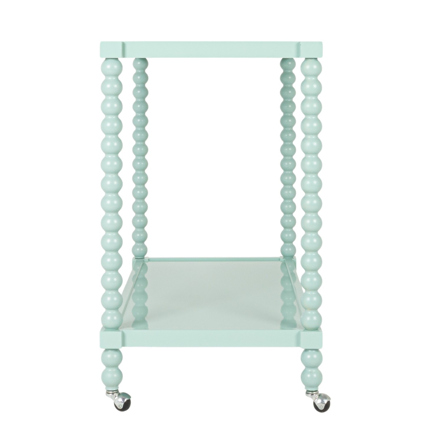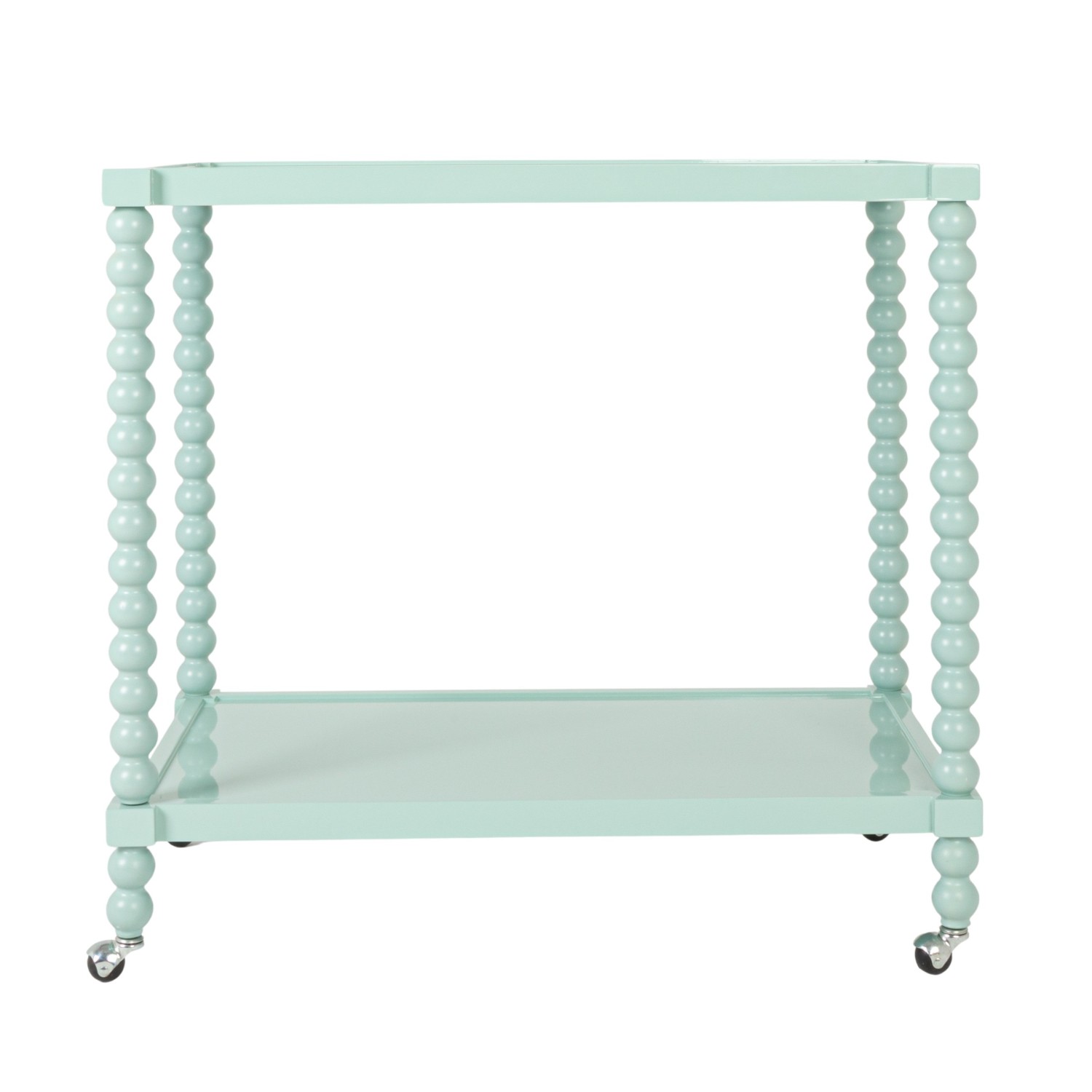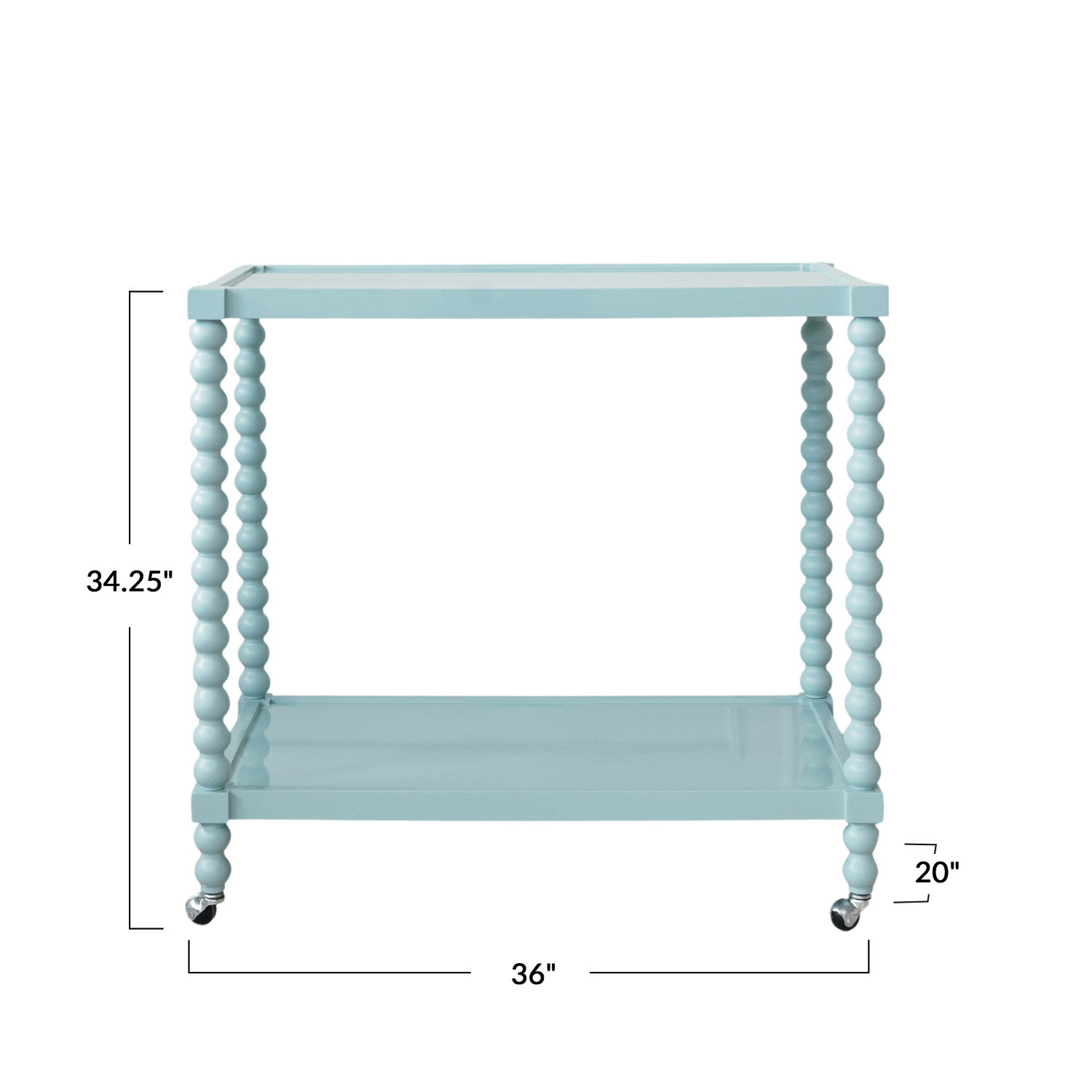 Catalog Name: 36"W x 20"D x 34-1/4"H Rubberwood Lacquered 2-Tier Bar Cart on Casters w/ Turned Legs, Blue, KD