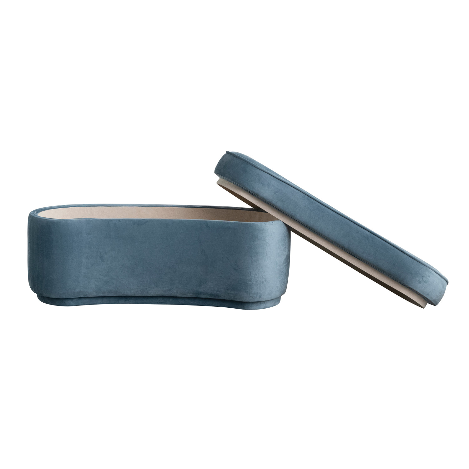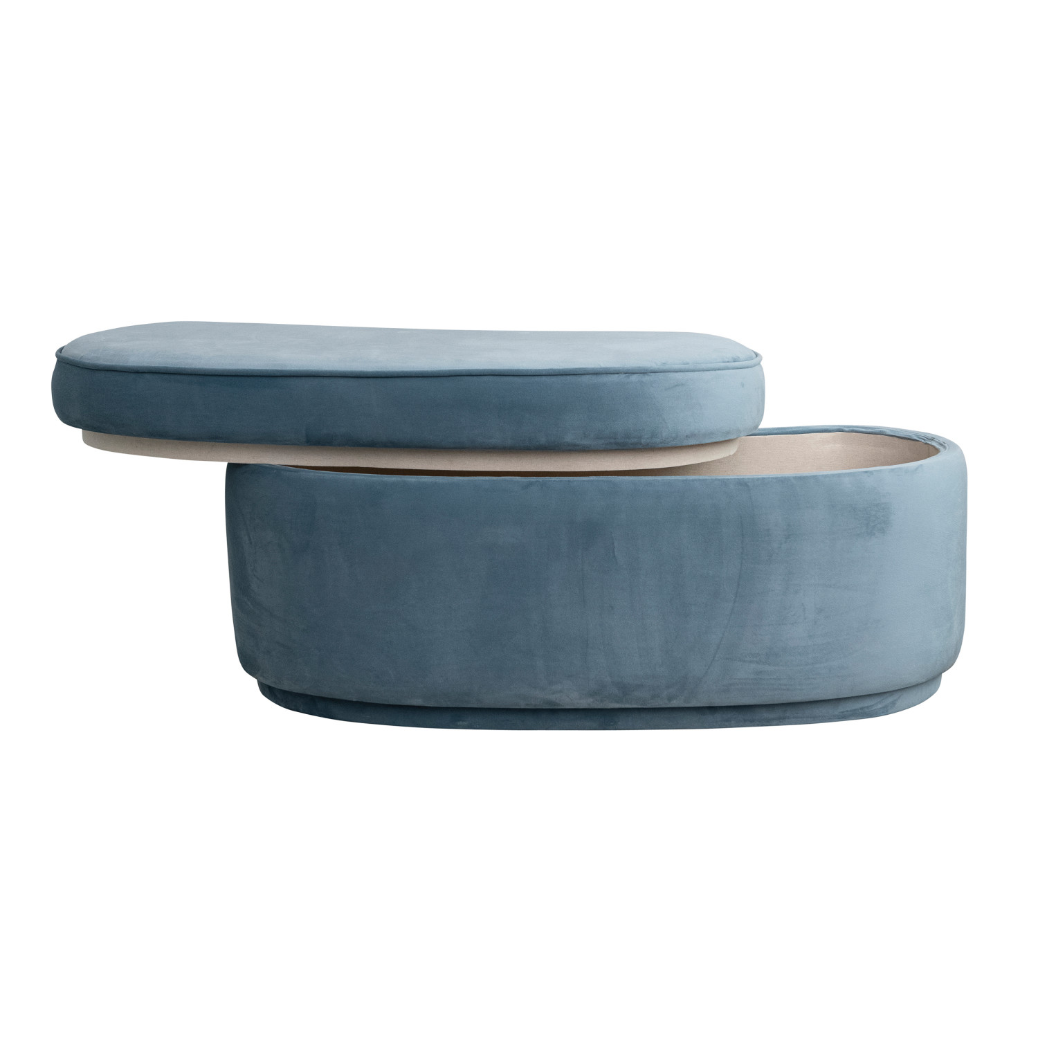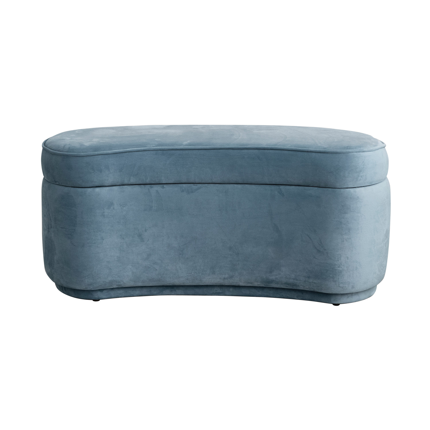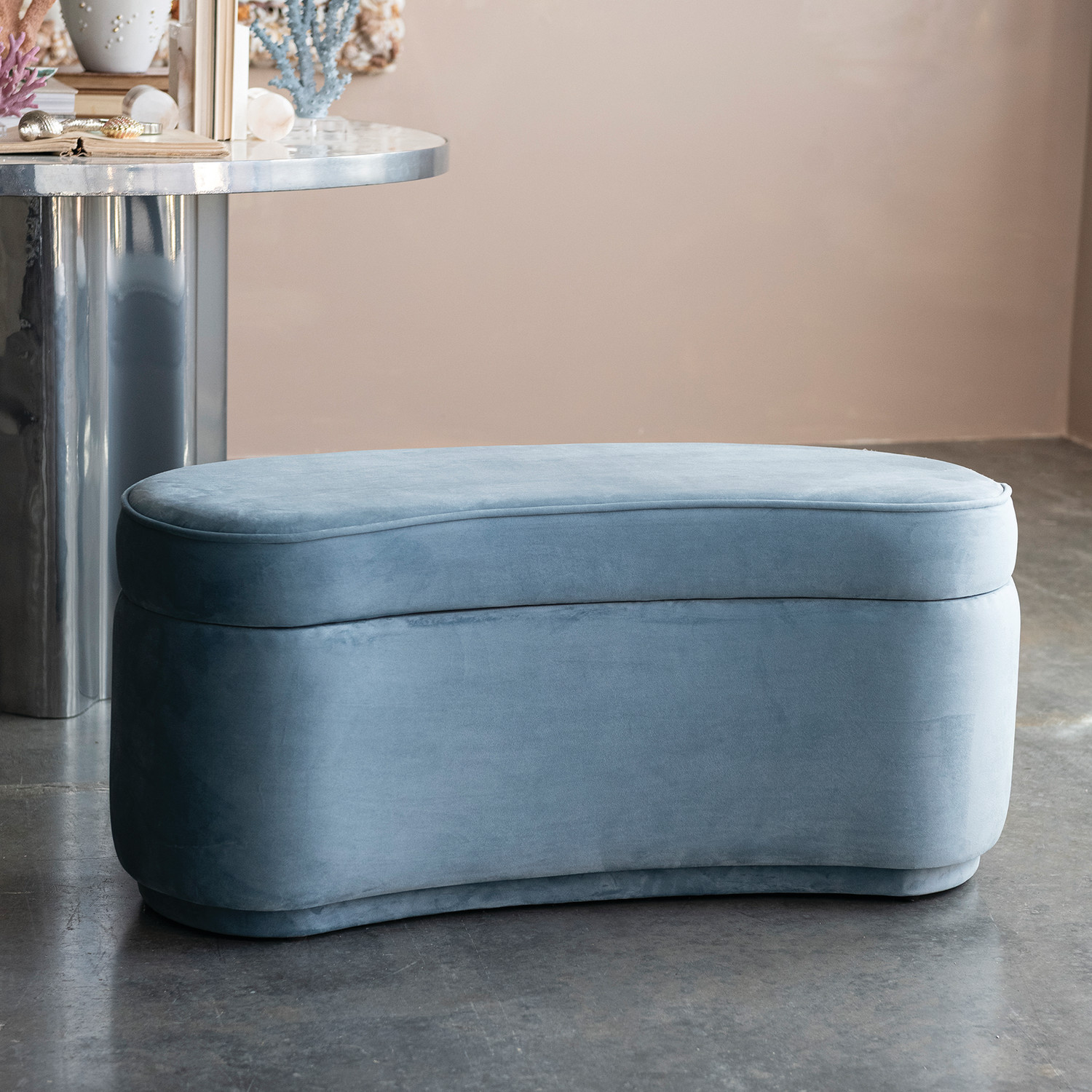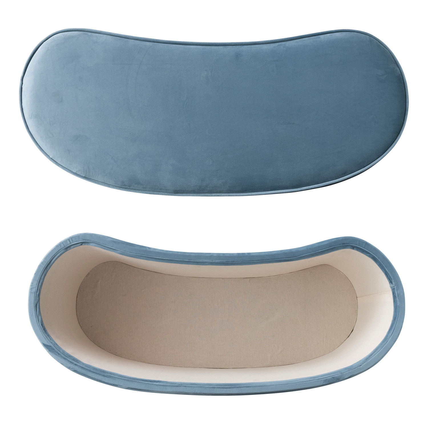 Velvet Upholstered Curved Bench with Lined Storage, Light Blue