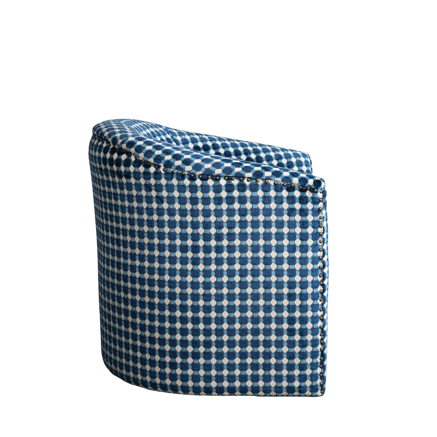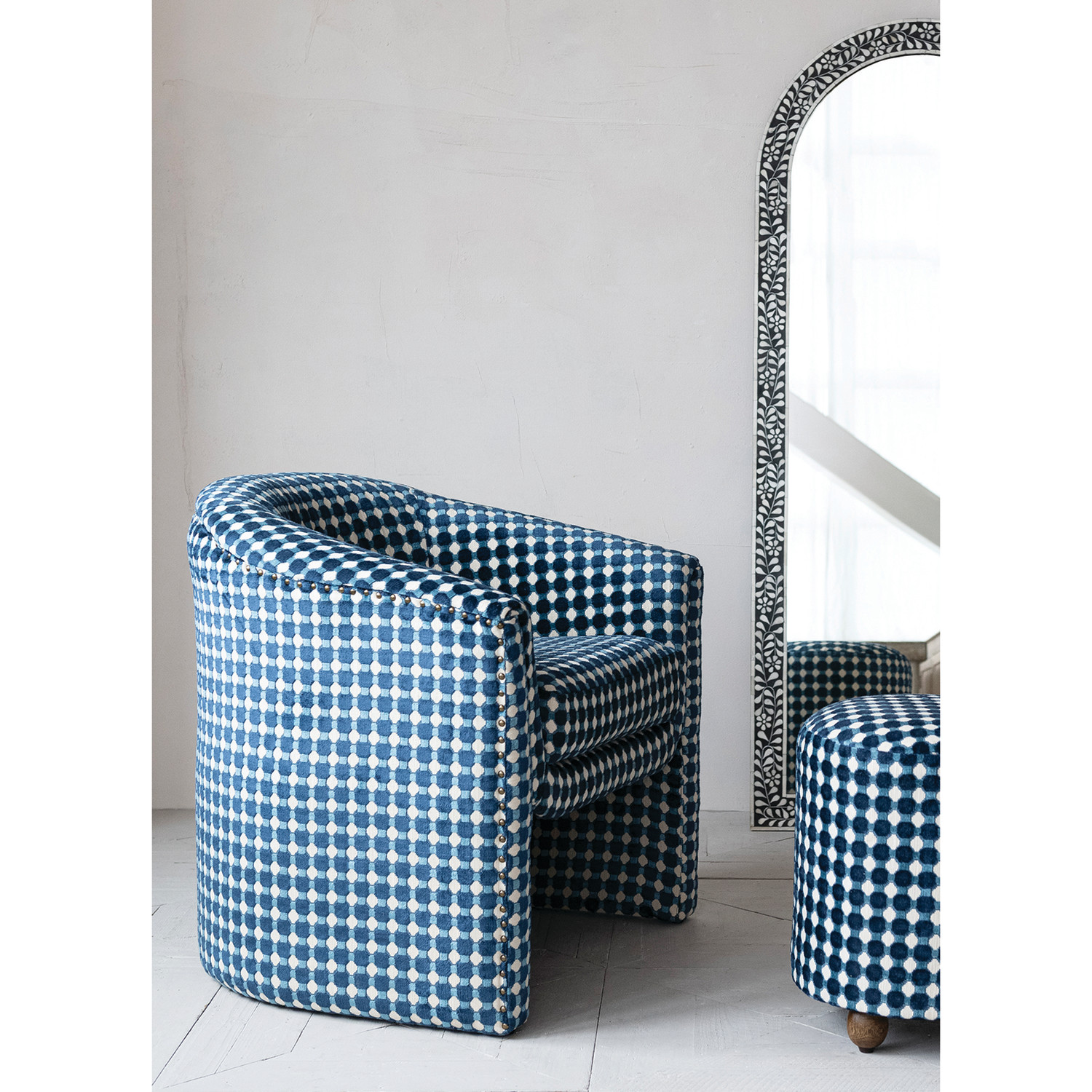 Catalog Name: 31"W x 29-1/2"D x 31-1/2"H Burnout Velvet Upholstered Chair w/ Nail Heads & Dot Pattern, Blue, White & Natural, Truck Ship