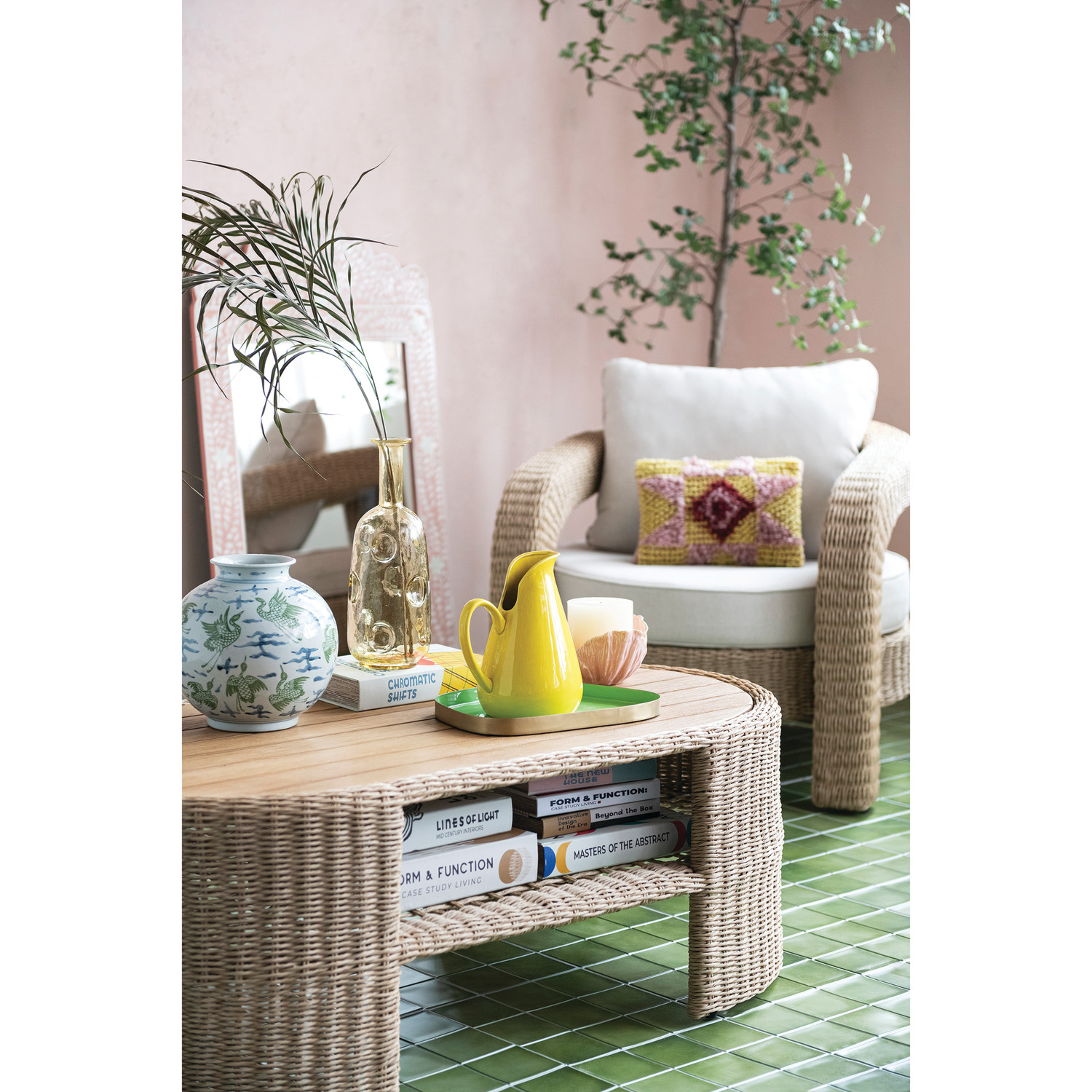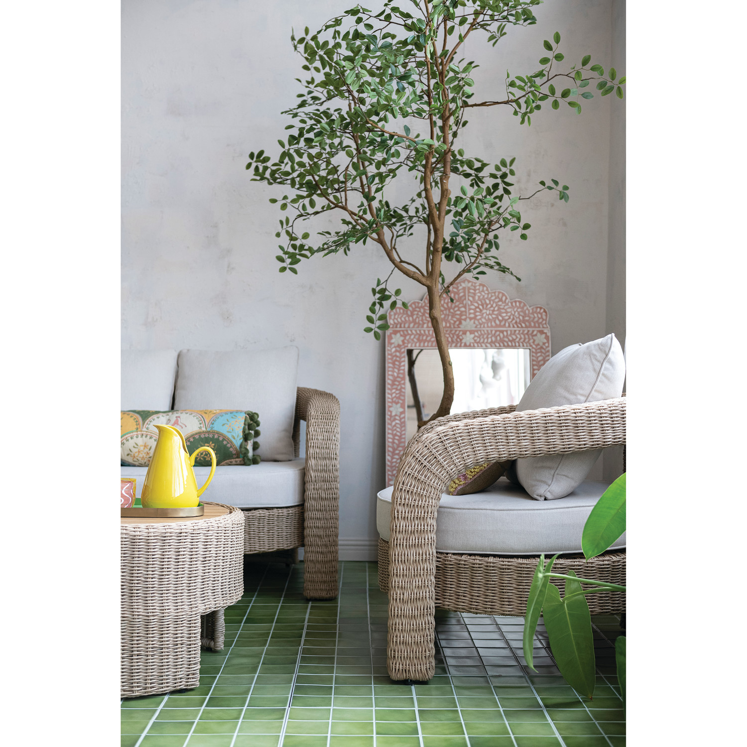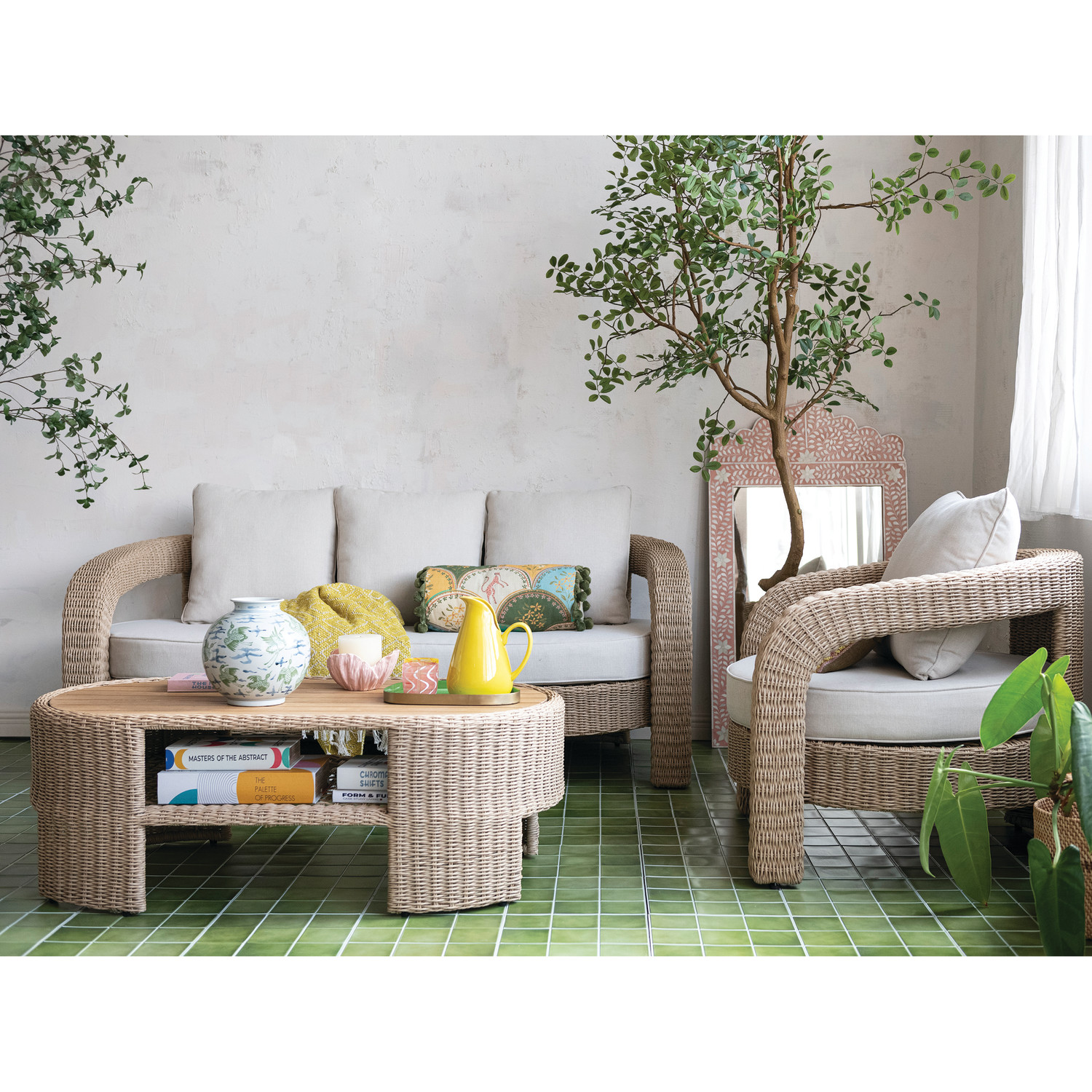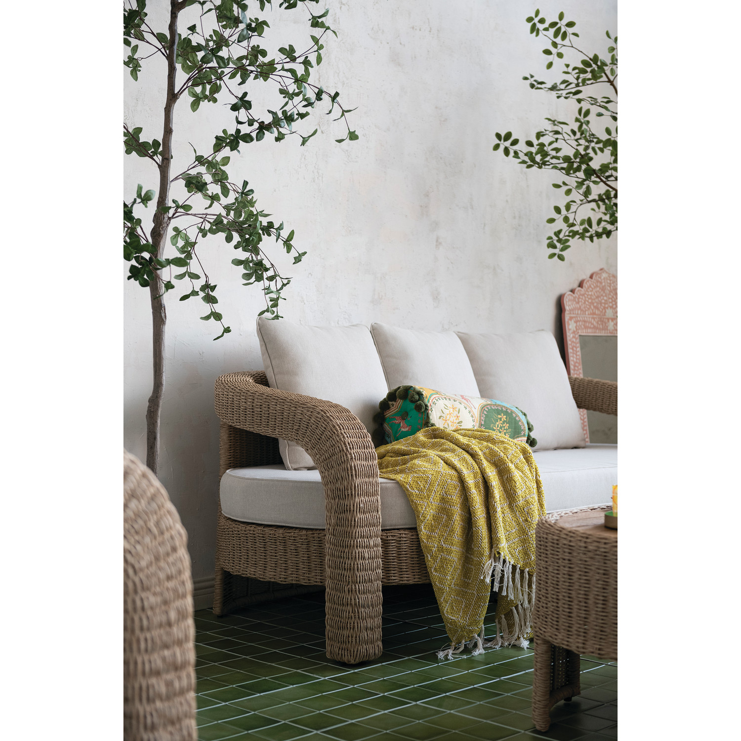 Hand-Woven Indoor/Outdoor Sofa & (2) Chairs with Table & Cushions, Set of 4