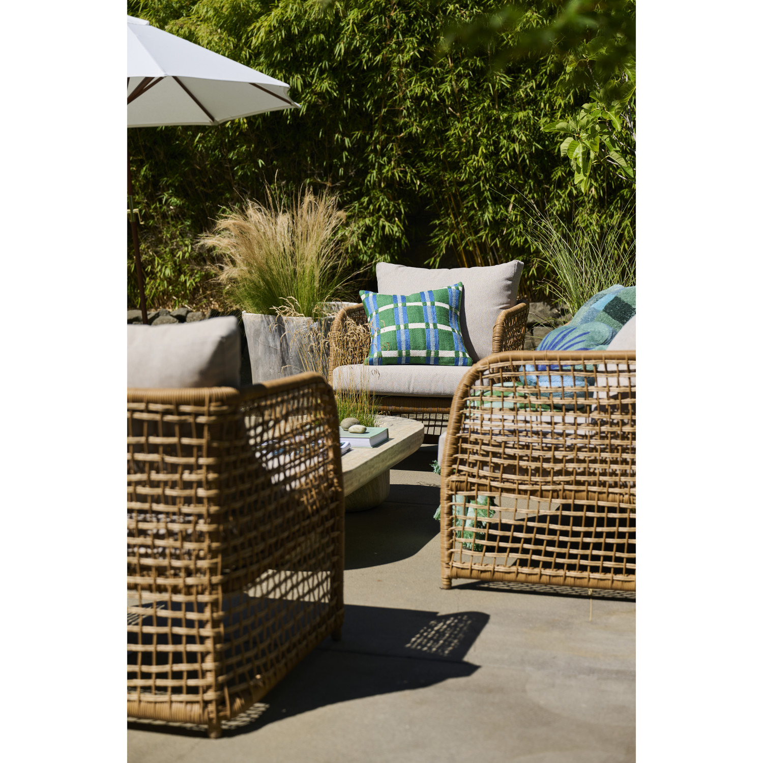 Hand-Woven Plastic Wicker Indoor/Outdoor Sofa with Fabric Cushions