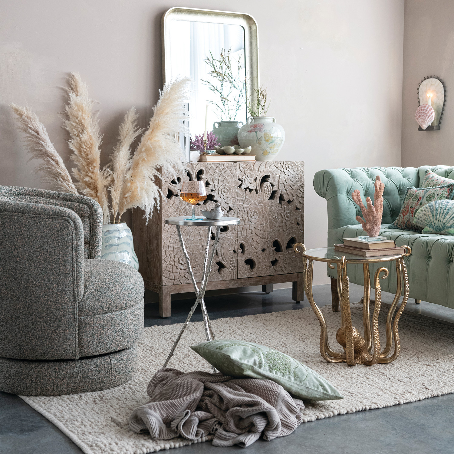 Boucle Fabric Upholstered Swivel Chair, Beige Melange